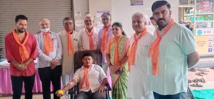 તેસાથે ધાનેરા શહેર તેમજ તાલુકા માં જરૂરિયાતના સમયે રક્તની ઉણપ ન પડે તે ને અનુસંધાને ભારતીય જનતા પાર્ટી યુવા મોરચાની ટિમ દ્વારા રક્તદાન કેમ્પ નું આયોજન કરવામાં આવ્યું હતું, આ કાર્યક્રમમાં ઉપસ્થિત કચ્છ જિલ્લા ભાજપના પ્રભારી ડૉ.હિતેશભાઈ ચૌઘરી,જિલ્લા યુવા ભાજપના પ્રમુખ સાગરભાઈ ચૌઘરી ,તથા આદરણીય હરજીવનભાઈ, વસંતભાઈ પુરોહિત શહેર ભાજપ પ્રમુખ પુનમાજી સુથાર ,મહામંત્રી તરુણભાઈ તેમજ શહેર યુવા પ્રમુખ નિયંત ગૌસ્વામી, શહેર યુવા મહામંત્રી રોહિત ઠક્કર, ભાજપ ઉપ પ્રમુખ અમૃત સોલંકી, કોષધ્યક્ષ સવાઈ મહેશ્વરી,તથા તમામ આગેવાન શ્રી ઓની પ્રેરક ઉપસ્થિતી મા કાર્યક્રમ યોજાયો હતો..