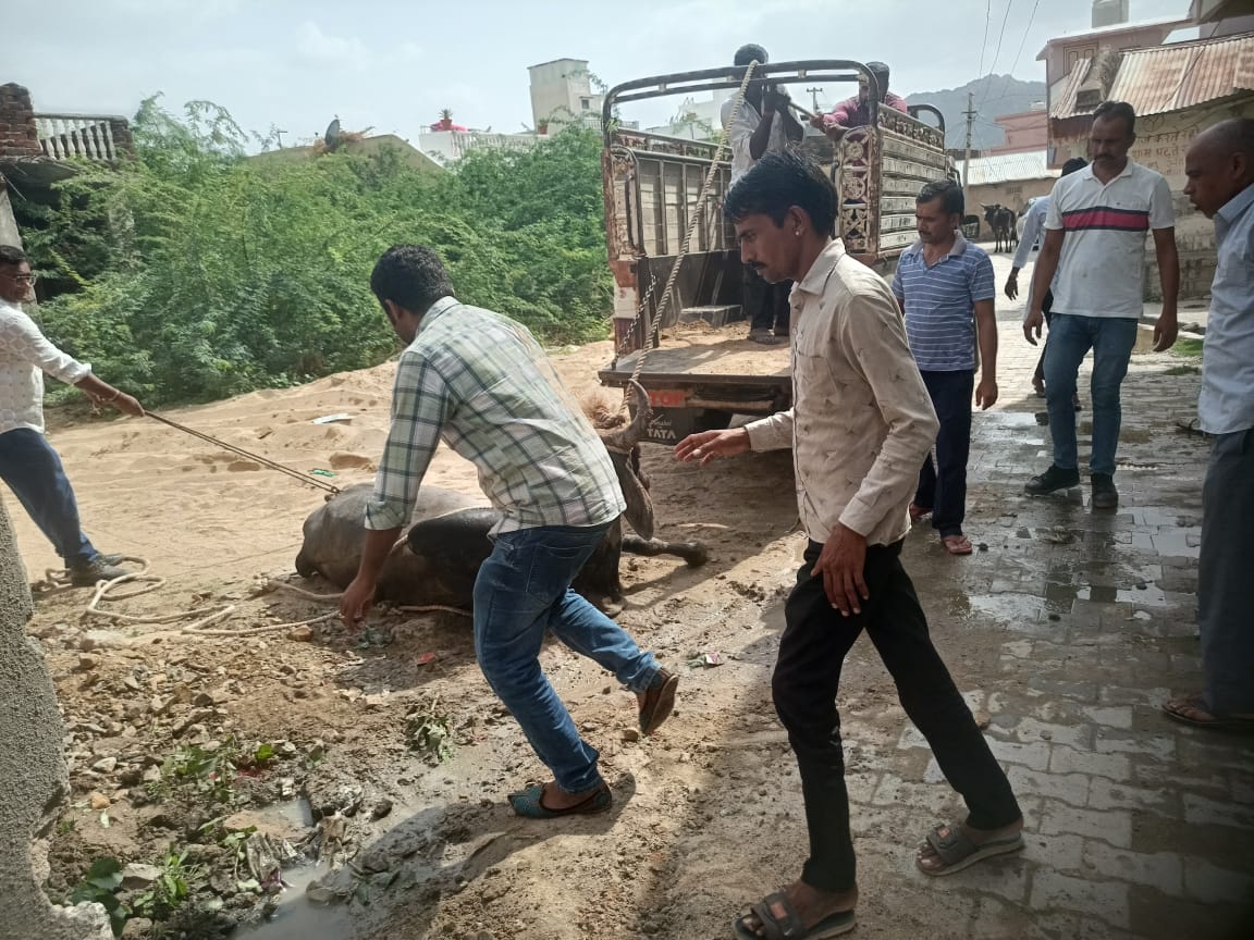 माताजी मंदिर के पास कई दिनों से बिमार एवं गंभीर घायल नंदी को डाक्टर मुकेश भाई पटेल के सहयोग एवं श्री राम सेना गौ भक्तों की सहायता से पीकप में भरकर सोडाल गौशाला में इलाज के लिए भेजा जहां पर इसका ओप्रेशन उपचार किया जाएगा इस दौरान डाक्टर मुकेश भाई पटेल, मोडसिह दहिया, अर्जुन सिंह गोहिल, सुरेश भाई मोदी, रविन्द्र कुमार जोशी, सुरेश भाई कामदार, भंवर लाल सुथार, मेहुल श्रीमाली, लक्ष्मण दर्जी, सहित कई लोग मौजूद थे।