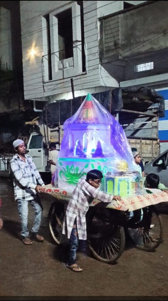 निवाली नगर में मुस्लिम समाज जनों द्वारा मोहर्रम का पर्व मनाया जा रहा है मोहर्रम पर्व के लिए तहत आज रात नगर में जुलूस निकाला गया