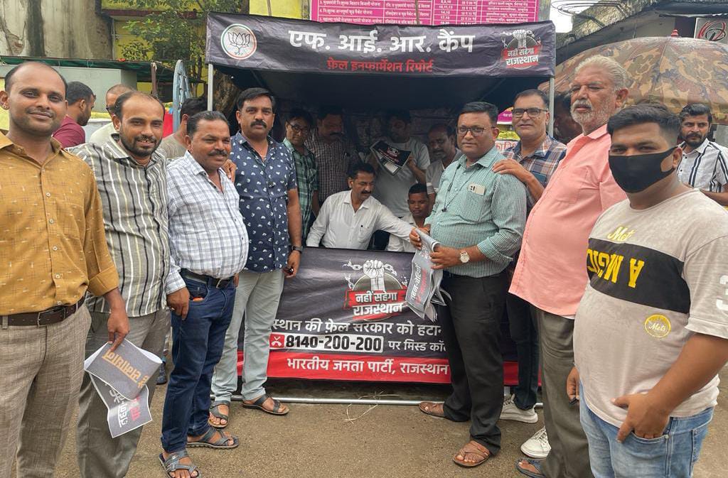 आज भाजपा नगरमंडल आबूरोड़ द्वारा मंडल अध्यक्ष भूपेन्द्र सम्बरीया की अध्यक्षता में भाजपा जिलाध्यक्ष सुरेश जी कोठारी एवम नगरपालिका अध्यक्ष मगन दान चारण के सानिध्य में बड़ी सब्जी मंडी के बाहर, कैलाश मेडिकल चौक पर FIR शिविर का प्रदेशव्यापी कार्यक्रम आयोजित किया एवम आबूरोड़ शहर से सम्बंधित समस्याओं के बारे में जागरूक जनता की कंप्लेन FIR रजिस्टर में लिखी। मंडल अध्यक्ष भूपेन्द्र सम्बरीया ने कहा पूरा प्रदेश में त्राहि मची हुई है, ये सरकार लूट पाट, भरस्टाचार एवम अराजकता में डूबी हुई है, गहलोत सरकार में लोइनआर्डर नाम की कोई चीज नही है, प्रशासन पे सरकार का कोई नियंत्रण नही है। ये सरकार पूरी तरह भ्रस्टाचार से लिप्त है, इन्ही के मंत्री इन पर भ्रष्टाचार व बलात्कारी के लिए नार्को टेस्ट के लिए कह रहे है। जिलाध्यक्ष सुरेश कोठारी ने कहा ये सरकार अपने रिपोर्ट कार्ड में हर विभाग में पूरी तरह फैल हुई है,चाहे मामला युवाओं को रोजगार का हो या महिला सुरक्षा का,चाहे किसान सम्मान का हो या दलितों के स्वाभिमान का,चाहे हिन्दू की आस्था का हो या प्रशासन एवम कानून व्यवस्था का ,इस सरकार ने ये 57 महीने सिर्फ होटलों में अपनी सरकार बचाने व आलाकमान को खुश करने में निकाल दिए अब जनता इनका रिपोर्ट कार्ड देख रही है और इनको नापसंद कर रही है। वरिष्ठ बाबुभाई पटेल ने कहा ये सरकार पूरी तरह तुस्टीकरण की राजनीति कर रही है,जयपुर बम ब्लास्ट के हत्यारों को बरी कर दिया गया।हिंदुओ के आस्था पर ठेश लगाते हुए उनके त्याहारों पर धारा 144 एवम शोभा यात्राओं पर प्रतिबंध एवम dj पर रोक लगाई वही 1 समुदाय विशेष को संगरक्षण देने के लिए pfi को रैली की अनुमति दी। राजस्थान के करोली,जोधपुर, उदयपुर, भीलवाड़ा,अलवर के साम्प्रदायिक दंगों में जिस प्रकार गहलोत सरकार ने मौन रहकर इनको बढ़ावा दिया उससे पूरे प्रदेश में अशांति का माहूल है। नगरपालिका अध्यक्ष मगनदान चारण ने कहा ये सरकार ने भ्रस्टाचार के सभी रिकॉर्ड तोड़ दिए, जयपुर में सरकार के योजना भवन में 2 करोड़ 31 लाख रूपये ओर 1 किलो सोना बरामद हुआ, जिसकी कोई जांच नही हुई, पीपलखूंट में 1000 करोड़ की खान 5 करोड़ में बेच दी, 20,000 करोड़ का जल जीवन मे घोटाला किया।