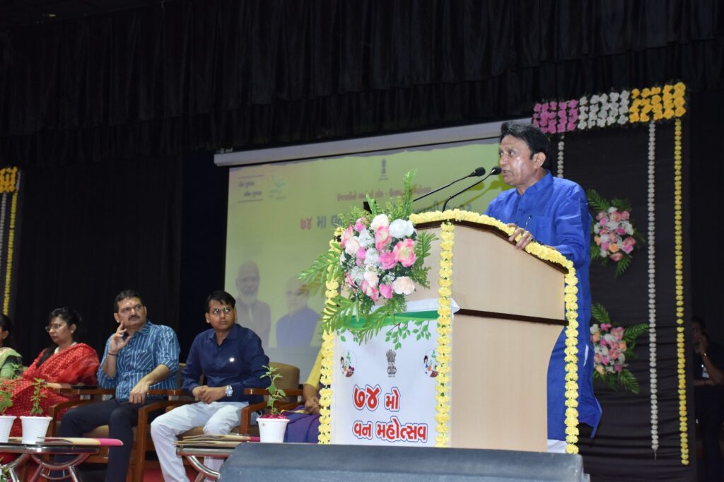 આ પ્રસંગે સંબોધન કરતાં કેબિનેટ મંત્રી બળવંતસિંહ રાજપૂતે જણાવ્યું હતું કે, આજે ગુજરાત રાજ્યના મુખ્યમંત્રીશ્રી સતત પ્રયાસોના લીધે આજે વનીકરણ દિશામાં ગુજરાત આગળ વધી રહ્યું છે. વન મહોત્સવની શરૂઆત કનૈયાલાલ મુન્શીથી થઈ હતી તેમને પૂરા ગુજરાતમાં આંદોલનની જેમ ભારતના યશસ્વી વડાપ્રધાન નરેન્દ્રભાઇ મોદી દ્વારા વેગ આપવામાં આવ્યો હતો. તેના લીધે સમગ્ર ભારત અને ગુજરાતમાં વનવિસ્તારમાં વધારો થઈ રહ્યો છે સાથે સાથે ગુજરાતના દરિયાઈ વિસ્તારોમાં ચેરના વૃક્ષોમાં પણ વધારો થઈ રહ્યો છે. આપણે વુક્ષોનું સર્વધન કરવું જોઈએ. માણસના જન્મના સમયથી મુત્યું સુધી ૧૦૦ વૃક્ષોની જરૂર પડે છે તેથી આપણે આપના જીવનમાં ઓછામાં ઓછા 100 વૃક્ષો વાવવાનું આયોજન કરવું જોઈએ તેનાથી સારું ડેવલોપમેન્ટ થશે. ઓછામાં ઓછા ૧ વૃક્ષ વાવીને જન્મદિવસની ઉજવણી કરવામાં આવશે ત્યારે લોકોમાં અનેરી જાગૃતિ ફેલાશે. આમ વુક્ષોની સાથે દરેકે પાણીનો પણ કરકસરપૂર્વક ઉપયોગ કરવો જોઈએ. ભાવિ પેઢી આપણને યાદ કરે તે માટે વૃક્ષોરૂપી એમને સંભારણા આપતા જઈએ.