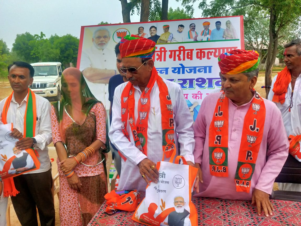 भीनमाल- प्रधानमंत्री गरीब कल्याण योजना के तहत गरीब परिवारों को 5 किलो मुक्त खाद्य उपलब्ध कराया जाता है । इस योजना का लाभ देश के 80 करोड लोगों को देने का लक्ष्य है । राशन कार्ड पर मिलने वाले तय कोटे के अतिरिक्त यह 5 किलो अनाज निःशुल्क दिया जाता है । कोरोना संकट के चलते सरकार ने इस योजना की शुरुआत की इस योजना के तहत भाजपा ग्रामीण मंडल भीनमाल के खाण्डादेवल गांव में गरीब परिवारों को निःशुल्क राशन किट वितरण किए गए । भाजपा भीनमाल विधायक पूराराम चौधरी ने कहां की देश में कोरोना काल में उपजे संकट में गरीबों को बहुत परेशानियों का सामना करना पड़ा । इसलिए प्रधानमंत्री ने यह योजना को प्रारम्भ किया है । जिससे गरीबों का कल्याण हो सके । भाजपा जसवंतपुरा प्रधान विमला चौहान ने कहां की भाजपा सरकार समाज के हर उस व्यक्ति को आत्मनिर्भर बनाने हेतु अग्रसर है । जो कि आर्थिक रूप से पिछड़ा हुआ है । गरीब कल्याण योजना चला कर गरीबों को मुफ्त राशन उपलब्ध करवाया जा रहा है । जो की बहुत नेक कार्य है । जिला परिषद सदस्य व जिला सहसंयोजक हरीश राणावत ने कहां कि केंद्र सरकार जन कल्याण हेतु बहुत योजनाएं चलाती है । जिसमें से प्रधानमंत्री गरीब कल्याण योजना भी है । इस योजना से आज देश में लाखों परिवार लाभान्वित हो रहे हैं । मंडल संयोजक सांवलाराम पुरोहित ने कहां की प्रधानमंत्री नरेंद्र मोदी ने प्रथम कोरोना काल में भी देश के गरीब परिवारों को भूखे नही सोने दिया उस समय भी गेहूँ, चावल, दाल, तेल सहित खाद्यपदार्थ उपलब्ध कराए थे। मंडल महामंत्री राव मदन सिंह कोड़िटा ने सभी अतिथियों व ग्रामवासियों का आभार व्यक्त किया । इस अवसर पर मंडल संयोजक सांवलाराम जी पुरोहित सहसंयोजक गोपाल सिंह तवाव भाजपा ग्रामीण मंडल भीनमाल के नवनियुक्त किसान मोर्चा मंडल अध्यक्ष पुखराज दर्जी, वार्ड पंच भंवरा राम पुरोहित रमेश सिंह राव , शक्ति केंद्र संयोजक ईश्वर पुरोहित , सरपंच चेतन राम मेघवाल, छगनलाल पुरोहित, जबराराम पुरोहित हरि सिंह राजपूत, पर्बत सिंह राजपूत, करनाराम ,छगना राम ,बाबू राम भील, रूपा राम भील, कालूराम मेघवाल, जेठाराम रबारी ,केसाराम मेघवाल ,वसना राम पुरोहित, लाखाराम मेघवाल, मफाराम, जीतू राणा सहित कई कार्यकर्ता उपस्थित थे ।