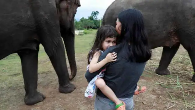 तभी एक हाथी ने तेजी से आगे आकर बच्ची को अपने पैरों के गैप के बीच ले लिया। हाथी ने तब तक बच्चों को अपने पैरों के बीच रखा जब तक उसके झुंड के अन्य साथी वहां से गुजर नहीं गए।