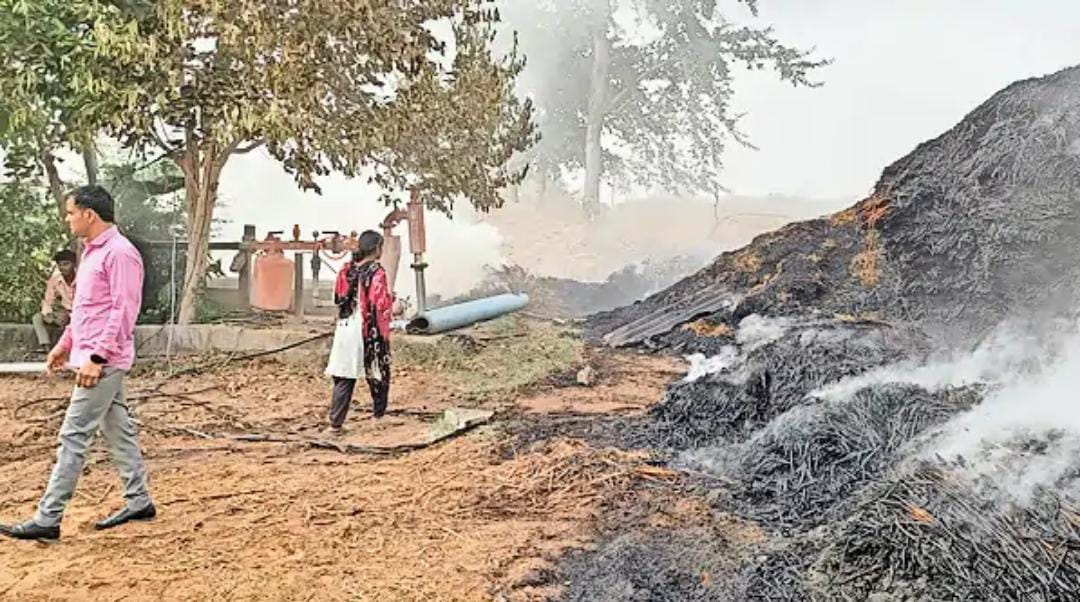 ધાનેરાના વાછોલની સીમમાં ડીપીમાં ફોલ્ટ સર્જાતા ઘાસચારો બળીને ખાખ