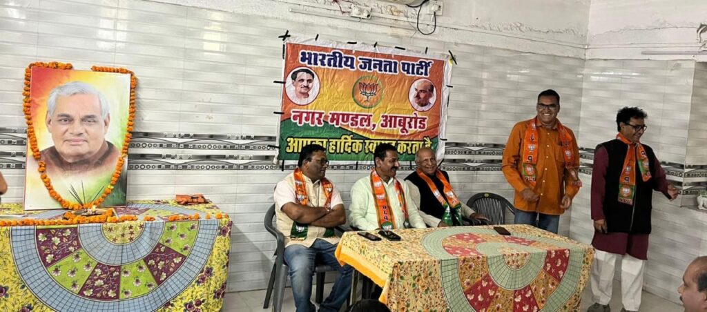 आज भाजपा नगर मंडल आबूरोड़ ने भारतीय जनता पार्टी के प्रथम राष्ट्रीय अध्यक्ष, प्रखर कवि,भारत रत्न ,पूर्व प्रधानमंत्री अटल बिहारी वाजपेयी जी की जन्म जयंती सेठ परसादीलाल धर्मशाला में जिला उपाध्यक्ष बाबुभाई पटेल,नगरपालिका अध्यक्ष मगनदान चारण, मंडल अध्यक्ष भूपेन्द्र सम्बरीया एवम बुद्दिजीवी प्रकोष्ठ के जिला संयोजक मनीष परसाई के सानिध्य में मनाई ओर अटल जी को याद किया एवम सभी ने अपने श्रद्धासुमन अर्पित किए।कार्यक्रम का मंच संचालन करते हुए महामंत्री दिनेश सेन ने बताया कि अटल जी का जन्म 25दिसंबर 1924 को हुआ था,वो भाजपा के संस्थापक सदश्य एवम प्रथम राष्ट्रीय अध्यक्ष थे।वो कवि भी थे उन्हें कविता लिखने एवम पढ़ने का बहुत शौक था,उनकी कविताओं में सार भी होता था,सर्वप्रथम अटल जी की प्रतिमा के समक्ष सभी अतिथियों ने दीप प्रज्वलन कर उनको श्रदांजलि देकर कार्यक्रम की शुरुआत की,सभी मंचासीन अतिथियों का दुपट्टे से स्वागत किया गया।बुद्दिजीवी प्रकोष्ठ के जिला संयोजक मनीष परसाई ने बताया वे पहले 16 मई से 1 जून 1996 तक, तथा फिर 1998 में और फिर19 मार्च 1999 से 22 मई 2004 तक भारत के प्रधानमन्त्री रहे। वे हिन्दी कवि, पत्रकार व एक प्रखर वक्ता थेवे भारतीय जनसंघ के संस्थापकों में एक थे, और 1968 से 1973 तक उसके अध्यक्ष भी रहे। उन्होंने लम्बे समय तक राष्ट्रधर्म, पाञ्चजन्य (पत्र) और वीर अर्जुन आदि राष्ट्रीय भावना से ओत-प्रोत अनेक पत्र-पत्रिकाओं का सम्पादन भी किया।वाजपेयी जी प्रधानमन्त्री पद पर पहुँचने वाले मध्यप्रदेश के प्रथम व्यक्ति थे,वे जीवन भर भारतीय राजनीति में सक्रिय रहे।