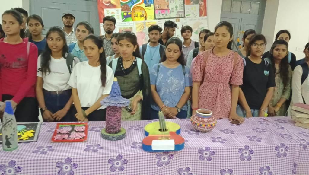कार्यकर्तागण प्रीति गुलवानिया और वर्षा मुजाल्दे ने बताया कि वोकेशनल कोर्स व्यक्तित्व विकास के सेकंड इयर के विद्यार्थियों ने इन कलाकृतियों का सृजन किया। उन्हें कॅरियर सेल ने प्रशिक्षित किया ताकि उनके व्यक्तित्व में कलात्मकता भी शामिल हो सके। इस प्रदर्शनी का संयोजन खुशी अग्रवाल, तुषार गोले, वर्षा मेहरा, सुभाष चौहान, प्रतिमा मुकाती, तुलसी शर्मा, पूनम पंडित आदि विद्यार्थियों ने किया।