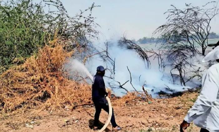 રાધનપુર , સાંતલપુર તાલુકાના ગ્રામ્ય વિસ્તારોમાં ભારે ગરમીથી આગની ઘટનાઓ: બને તાલુકાના ત્રણ ગામોમાં આગની ઘટનામાં રાધનપુર પાલિકા ફાયર ટીમો પહોચી આગ પર કાબુ મેળવ્યો