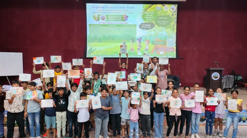 પાટણના રિજિયોનલ સાયન્સ સેન્ટર ખાતે આજે 29 મે 2024 ના રોજ ધોરણ 6 થી 9 માટે ત્રણ દિવસીય દ્વિતીય સમર સાયન્સ કેમ્પના પ્રથમ દિવસની ભવ્ય શરૂઆત કરાઇ. જેમાં 7 જિલ્લાની 29 શાળાઓના ઘણાબધા વિદ્યાથીઓએ નોંધણી કરાવેલ હતી. જેમાંથી દ્વિતીય કેમ્પમાં 40 વિદ્યાર્થીઓની પસંદગી કરવામાં આવી હતી. સમર સાયન્સ કેમ્પમાં STEM (સાયન્સ, ટેક્નોલૉજી, એન્જીનિયરીંગ અને મેથેમેટીક્સ) આધારિત વિવિધ સાયંટિફિક ચર્ચા, વર્કશોપ અને એક્ટિવિટીઓ સાથે ઈંડોર અને આઉટડોર ગેમ્સનું આયોજન કરેલ છે જેમાં આજે સાયન્સ સેન્ટરની ગેલેરી વિઝીટ સાથે હ્યૂમન એનટોમી, ડીએનએ અને પ્રયોગશાળા ના સાધનો પર વર્કશોપ, મંગળ ગ્રહ પર સાયંટિફિક-શો, ડો. એ.પી.જે. અબ્દુલ કલામ અને ડો. વિક્ર્મ સારાભાઇ વિશે ડોક્યુમેન્ટરી-શો, ડ્રોન ટેક્નોલૉજી પર વર્કશોપ, પર્યાવરણ સંરક્ષણ થીમ પર ચિત્ર વર્કશોપ સાથે બ્રેઈન ફોકસ અને બકેટ બોલ ગેમ્સનો સમાવેશ થાય છે. કાર્યક્ર્મની શરૂઆત સાયન્સ સેન્ટર ના પ્રોજેકટ ડાયરેક્ટર ડો. સુમિત શાસ્ત્રી અને સ્ટાફ મિત્રો સાથે દીપ પ્રાગટ્ય અને સરસ્વતી વંદનાથી કરવામાં આવી હતી. ત્યારબાદ તેમને સમર સાયન્સ કેમ્પ ના મહત્ત્વ, તેનાથી થતા વિદ્યાર્થીઓને લાભ વિશે ચર્ચા કરી હતી. તેમને વધુમાં જણાવ્યું કે આ પ્રકારની એક્ટવિટી ના મારફતે વિદ્યાર્થીઓ શારીરિક અને માનસિક રીતે વધારે સક્ષમ થાય છે અને વિદ્યાર્થીઓમાં સહભાગિતાના કૌશલ્યનું નિર્માણ થાય છે.