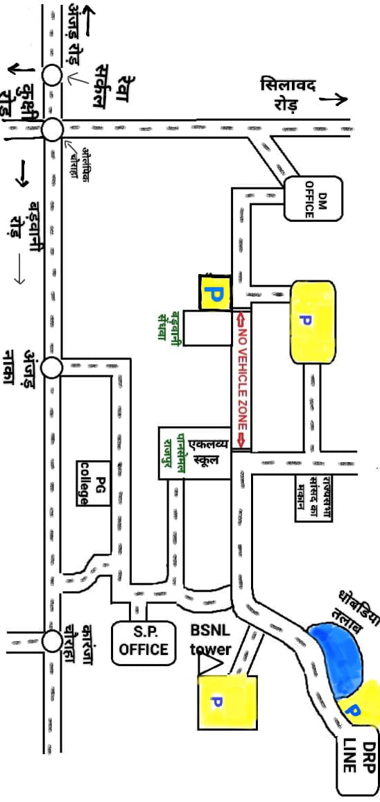 बड़वानी पुलिस की ओर विशेष आग्रह है कि कृपया दिए गए निर्देशानुसार विधानसभा अनुसार निर्धारित मार्ग से अपना वाहन लाये एवं पुलिस का सहयोग करें।