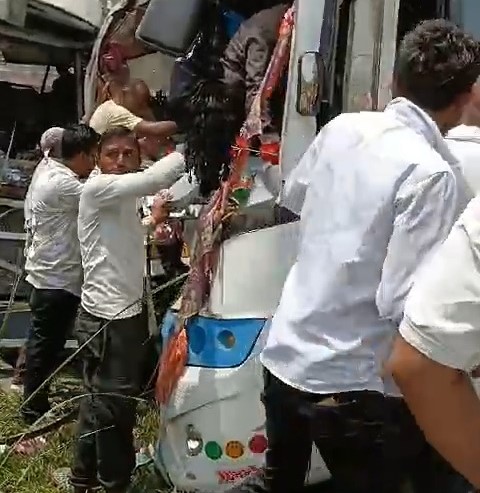 અકસ્માત સ્થળે એકઠા થયેલા લોકોએ બચાવ કાર્ય શરૂ કર્યું
