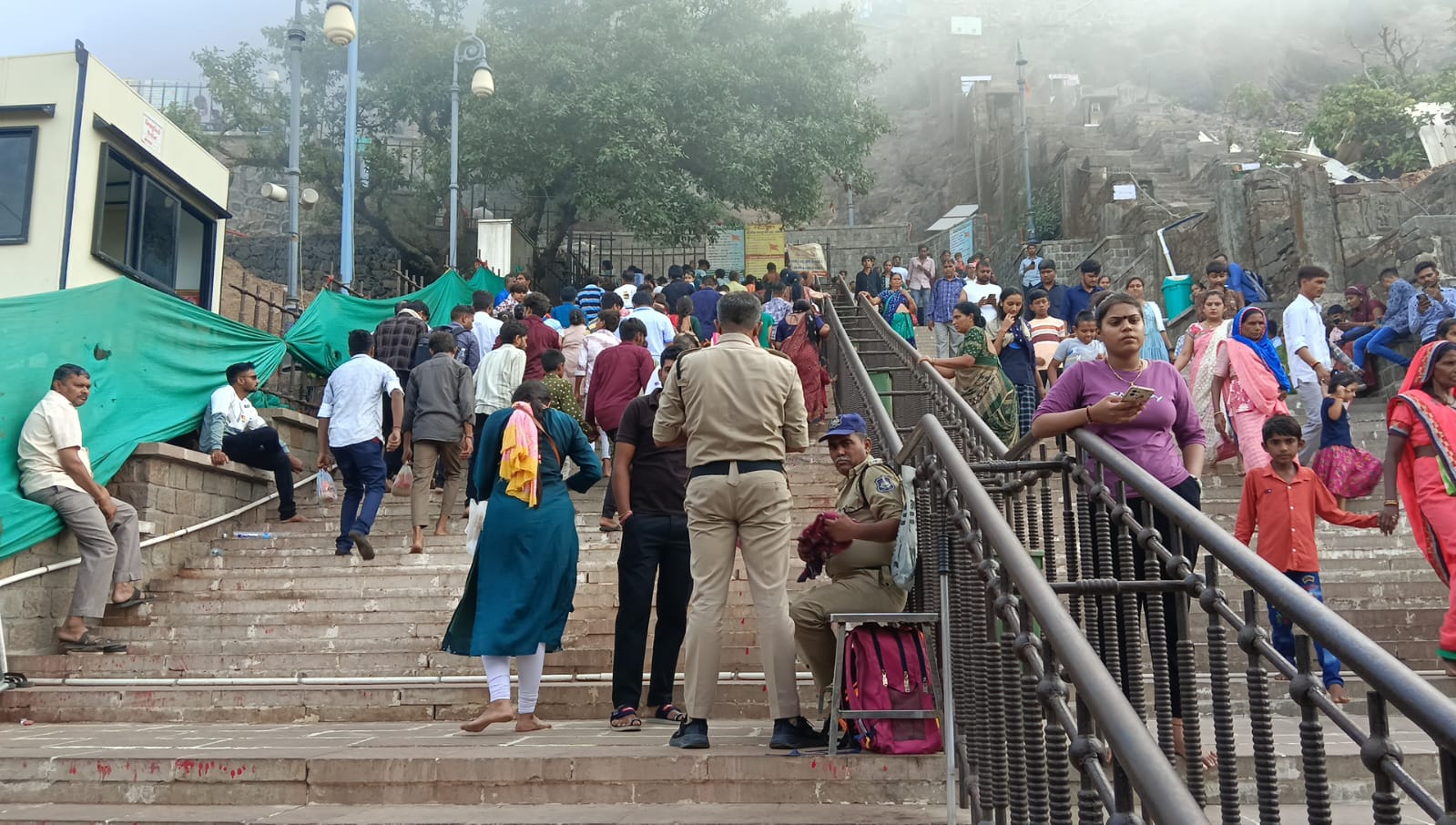 માં કાલિકા મંદિર ટ્રસ્ટના ટ્રસ્ટીઓ અને કર્મચારીઓ દ્વારા સહુલત અને આરામ સાથે મહાકાળી માતાજીના દર્શન કરાવવામાં આવ્યા હતા જ્યારે પાવાગઢ પોલીસ તંત્ર દ્વારા પણ યાત્રિકોની સુરક્ષા સલામતીને અનુલક્ષીને તેમજ કાયદો વ્યવસ્થાની પરિસ્થિતિની જાળવણીને અનુલક્ષીને ડુંગર પર મહાકાળી માતાજીના મંદિર પરિસરથી લઈ માચી અને તળેટીમાં ચાંપાનેર ખાતે ઠેર-ઠેર ભારે ચુસ્ત પોલીસ બંદોબસ્ત ગોઠવી દઈ સતત પરિસ્થિતિ પર ચાંપતી નજર રાખવામાં આવી હતી.