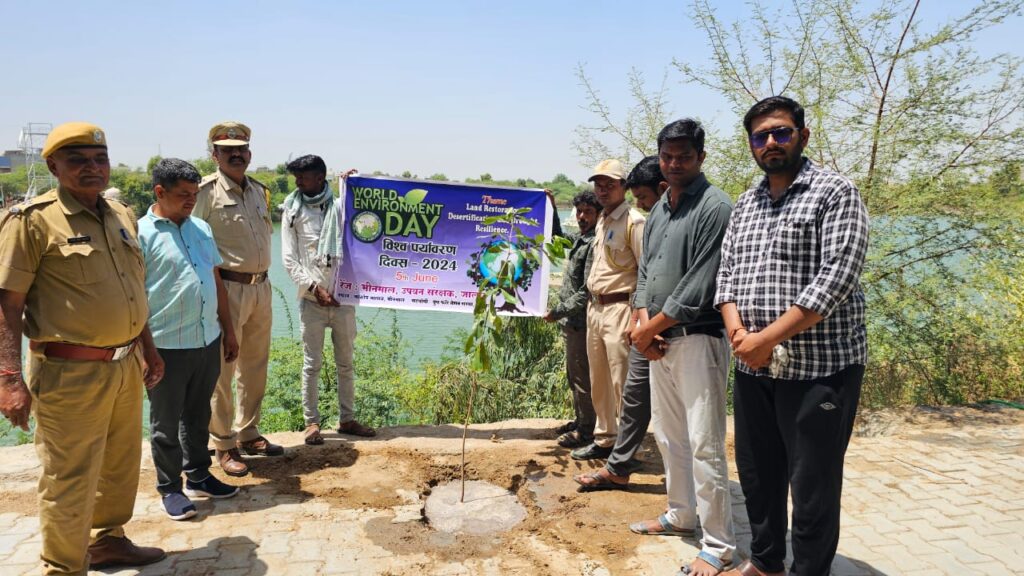 भीनमाल विश्व पर्यावरण दिवस पर वन विभाग भीनमाल वह यूथ फॉर नेशन संस्था के सयुक्त तत्वावधान में 20 वृक्ष फलदार तथा 20 परिंदे बावड़ी पर लगाए गए वह 50 पौधे उनके द्वारा डोनेट किए गए यूथ फॉर संस्था से किशोर सांखला श्रवण सोनगरा पृथ्वीराज फुलवरिया मीठालाल सुंदेशा प्रशांत त्रिवेदी साहिल सिंह भोजाणी दिनेश जोशी सहित संस्था के मेंबर मौजूद रहे।