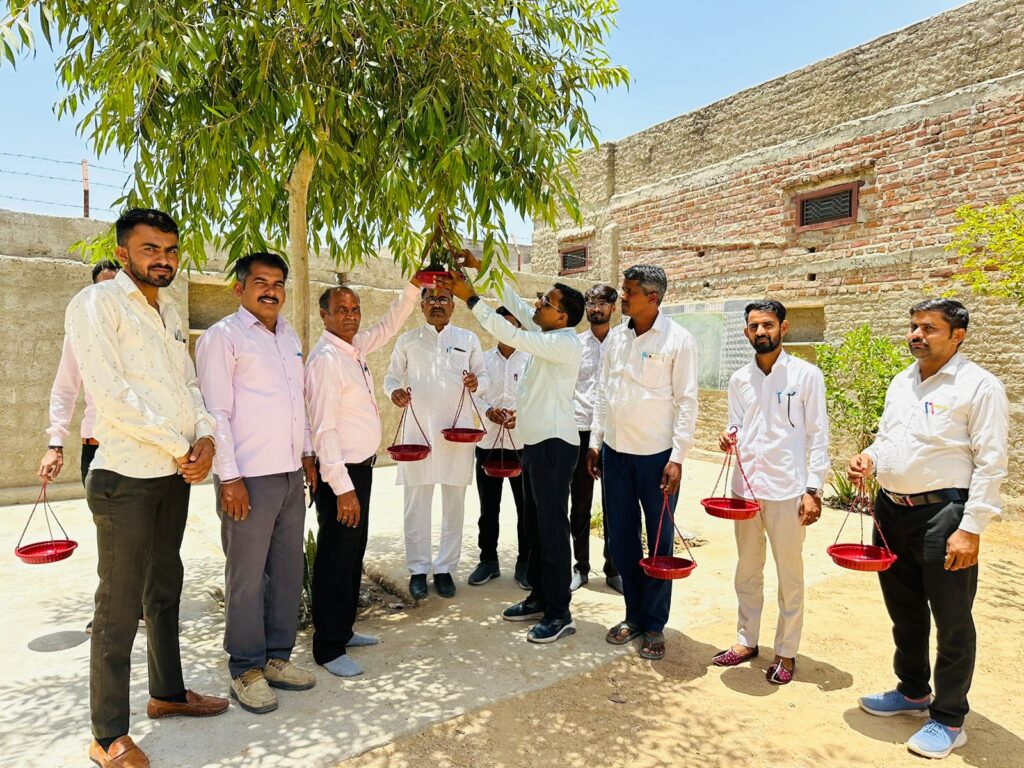 भीनमाल । राज्य में प्राइवेट स्कूलों के सबसे बड़े संगठन स्कूल शिक्षा परिवार की जिला की टीम द्वारा पर्यावरण दिवस के अवसर पर “परिंड़ा लगाओ-परिंदा बचाओ” अभियान तथा वृक्षारोपण अभियान का शुभारंभ जिलाध्यक्ष विक्रमसिंह धानसा तथा जिला प्रभारी जीवाराम पंसेरी के द्वारा किया गया। इस अभियान के माध्यम से जिले भर के निजी विद्यालयों के संस्था प्रधानों, शिक्षकों, विद्यार्थियों तथा अभिभावकों के माध्यम से जिलेभर में अभियान चलाकर परिंड़ा लगाकर उसमें पक्षियों के लिए नियमित दाना पानी की व्यवस्था की जाएगी। साथ ही वृक्षारोपण अभियान के तहत पौधे लगाने की शुरुआत की गई तथा उन पौधों का संरक्षण, संवर्धन करने का संकल्प लिया गया। साथ ही बैठक में उपस्थित सभी संस्था-प्रधानों को जिलाध्यक्ष के कर-कमलों से परिण्डे वितरण कर अभियान को आगे बढ़ाने की जिम्मेदारी दी गई। इस अभियान को जिले भर में जोर-शोर से चलाया जाएगा।वृक्षारोपण तथा परिण्डा लगाओ अभियान के शुभारम्भ कार्यक्रम में जिलाध्यक्ष विक्रमसिंह धानसा ने पर्यावरण के महत्व पर प्रकाश डाला तथा पर्यावरण का संरक्षण करने का संकल्प दोहराया। इस दौरान प्रदेश प्रतिनिधि हरीश पटेल पावली, आयोजक विद्यालय के संस्था प्रधान मिश्राराम प्रजापत, माधाराम सोमता, बाबूलाल राजपुरा, मसराराम कारलु, सोमाराम दांतलावास, भैरूपाल सिंह सेरणा सहित कई विद्यालय संचालक मौजूद थे।