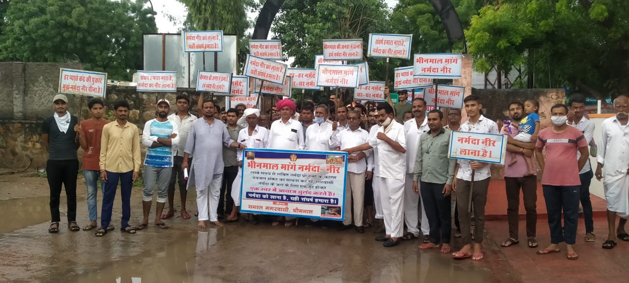 नर्मदा नीर को लेकर आंदोलन तेज,28 से चक्का जाम भीनमाल-भीनमाल नगर सहित विधानसभा क्षेत्रवासियों को पेयजल संकट से निजात दिलवाने की मांग को लेकर नगरवासियों द्वारा गठित नर्मदा नीर संघर्ष समिति द्वारा स्थानीय एसडीएम कार्यालय के समक्ष आयोजित अनिशिचतकालीन धरना प्रदर्शन, हस्ताक्षर अभियान व क्रमिक अनशन धमने का नाम नही ले रहा है।सरकार, प्रसाशन व क्षेत्रीय जनप्रतिनिधियों की अनदेखी की वजह से आंदोलन धीरे धीरे उग्र रूप धारण कर रहा है।नगरवासियों के साथ साथ ग्रामीण क्षेत्र व विभिन्न समाज भी आंदोलन से जुड़कर समर्थन की होड मची हुई हैं।गुरुवार को धरना प्रदर्शन के 39 वे दिन बारिश के बावजूद धरना प्रदर्शन जारी रहा।इस दौरान श्री मारु प्रजापति(कुमावत)समाज द्वारा धरना देकर पीएम व सीएम के नाम उपखंड अधिकारी जवाहरराम चौधरी को ज्ञापन सौपकर नर्मदा का पानी दिसम्बर 31तक उपलब्ध करवाने की मांग की है।समाज के अध्यक्ष जामताराम प्रजापति, कोषाध्यक्ष कस्तूराराम प्रजापति व सचिव राजेश सोलंकी के नेतृत्व में बड़ी संख्या में प्रजापति समाज के लोग रैली के रूप में नारेबाजी करते हुए धरना स्थल पहुंचे।यहाँ करीब घन्टाभर तक धरना देकर समिति की मांग को जायज ठहराते हुए पूर्ण समर्थन का ऐलान किया।इसके बाद उपखंड अधिकारी को ज्ञापन सौपा।ज्ञापन में राज्य सरकार से नर्मदा परियोजना ईआर प्रोजेक्ट के कार्य मे गति लाकर दिसम्बर तक भीनमाल क्षेत्रवासियों को पानी उपलब्ध करवाने की मांग की,अन्यथा 28 सितम्बर से चक्का जाम का अल्टीमेटम दिया गया।इस अवसर पर बड़ी संख्या में समाज के लोग व समिति के कार्यकर्ता मौजूद थे।इससे पूर्व बुधवार रात्रि को एसडीएम आवास के बाहर महिलाओं व पुरुषों द्वारा ढोल,थाली व वाद्ययंत्र बजाकर प्रसाशन को जगाने का प्रयास किया।एसडीएम आवास के बाहर लोगो की भारी भीड़ व कानून व्यवस्था बिगड़ने की संभावना के चलते एसडीएम आवास,विधायक पूराराम चौधरी व पूर्व विधायक डॉ समरजीतसिंह के आवास के बाहर पुलिस उप अधीक्षक शंकरलाल व थाना अधिकारी दुलीचंद गुर्जर के नेतृत्व में भारी पुलिस बल तैनात किया गया था।गुरुवार को भी एसडीएम कार्यालय के बाहर थानाधिकारी के नेतृत्व में पुलिस बल तैनात रहा।ज्ञात रहे कि यदि सरकार, प्रसाशन व जनप्रतिनिधियों द्वारा आंदोलन का समाधान नही निकाला गया तो,यह आंदोलन बड़ा रूप धारण कर सकता हैं, जिसका प्रभाव जिलेभर में होगा।इस दौरान कानून व्यवस्था का संकट भी खड़ा हो सकता है।