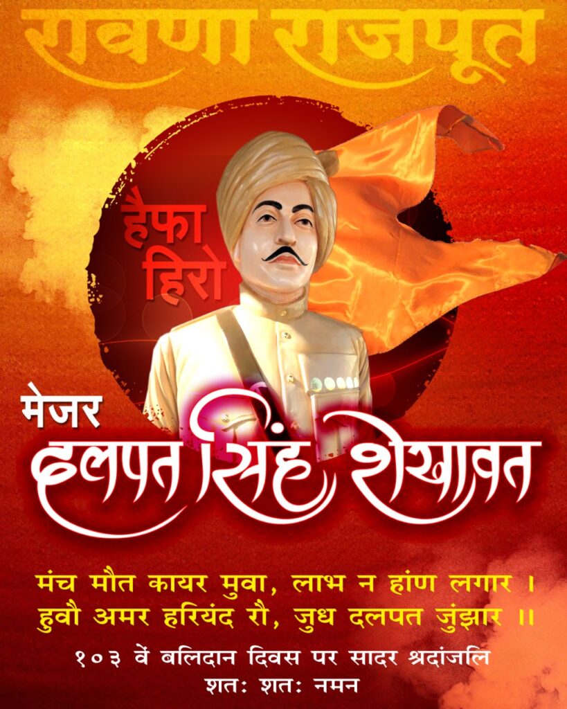 आज दिनांक 23 सितंबर 2021 को रावणा राजपूत सभा भवन बड़गांव में हाईफा हीरो मेजर दलपत सिंह जी देवली का103 वा बलिदान दिवस मनाया गया इस मौके पर बड़गांव के रावणा राजपूत समाज के लोगों ने मेजर साहब को श्रद्धांजलि अर्पित की।