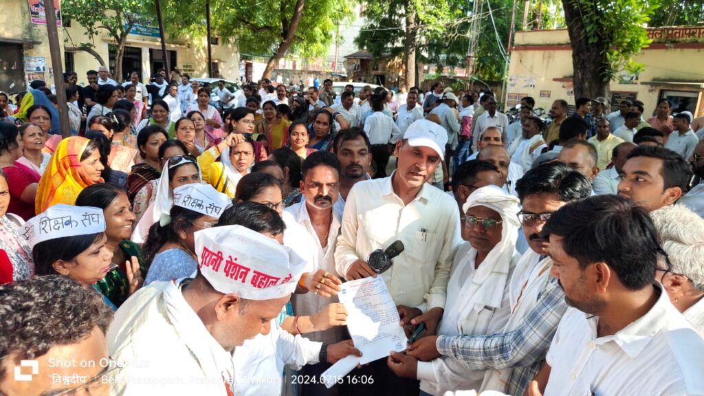प्रतापगढ़ -आज 16 जुलाई को शिक्षक एवं कर्मचारी संयुक्त मोर्चा के पदाधिकारियों नें एन आई सी प्रतापगढ़ पर एकत्र होकर सांकेतिक धरना देने के बाद सक्षम अधिकारी को सात सूत्रीय ज्ञापन दिया इनका कहना था की ऑनलाइन हाज़िरी का हम विरोध करते हैं और ज़ब तक ये निर्णय वापस नही लिया जायेगा तबतक विरोध जारी रहेगा,, क्युकी शिक्षक दूर से भी आते जाते हैं ऐसे मे अगर रास्ते मे कोई दिक्कत आ जाये तो उसे स्कूल पंहुचने मे देर हो सकती है और फिर शिक्षक अधिकारी के कोप भाजन बने और कार्यवाही झेले ऐसी दशा मे हम ऑनलाइन हाज़िरी प्रणाली लागु नही होने देंगे इस विरोध कार्यक्रम मे पूरे जनपद के शिक्षक ,शिक्षा मित्र एवं कर्मचारी संयुक्त मोर्चा के पदाधिकारी मौजूद थे।