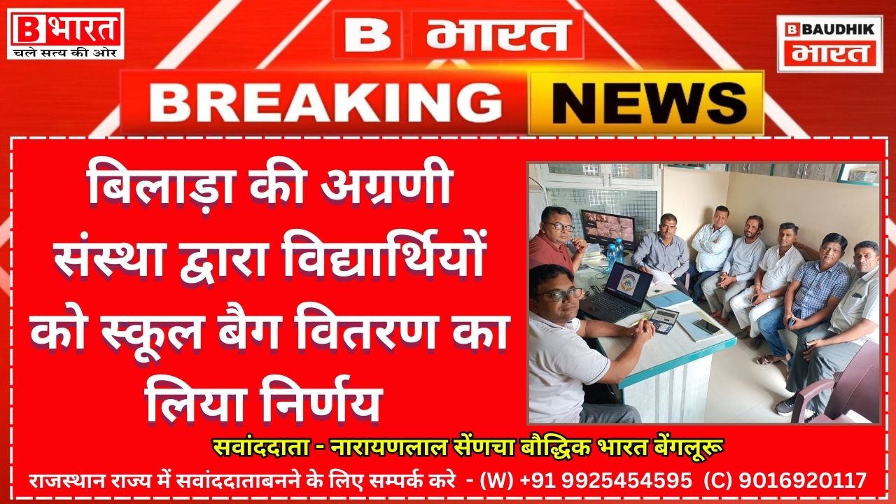 जोधपुर : बिलाड़ा की अग्रणी संस्था पहल संस्थान बिलाड़ा द्वारा बिलाड़ा शहर के वार्ड के सभी सरकारी विद्यालयों में कक्षा 1 से 5 के सभी विद्यार्थियों को विद्यालय बैग वितरण करने का निर्णय लिया गया है। संस्थान अध्यक्ष गोविंद सिंह सीरवी ने बताया कि बिलाड़ा शहर के विभिन्न वार्डो के सभी सरकारी विद्यालय में 15 अगस्त से पहले कक्षा1 से 5 के सभी विद्यार्थियों को संस्थान द्वारा विद्यालय बैग वितरण किये जाएंगे। संस्थान द्वारा ये निर्णय सरकारी विद्यालयों में नामांकन बढ़ाने व सरकारी विद्यालयों का उत्साह बढ़ाने के अंतर्गत किया गया। इस अवसर पर संस्थान अध्य्क्ष गोविंद सिंह सीरवी, डॉ. रमेश राठौड़, राजा रुस्तम, कमल सीरवी,महेंद्र जांगिड़, तेजाराम राठौड़, रोहिताश्व चौधरी, मुकेश आर्य, पुनाराम चोयल, प्रमोद राठौड़, कैलाश चौहान, पुखराज सीरवी, चिमन प्रकाश पंवार, लोकेश चौधरी, नरेश मेरावत, कुलदीप राठौड़ सहित संस्थान के सदस्य मौजूद रहे।