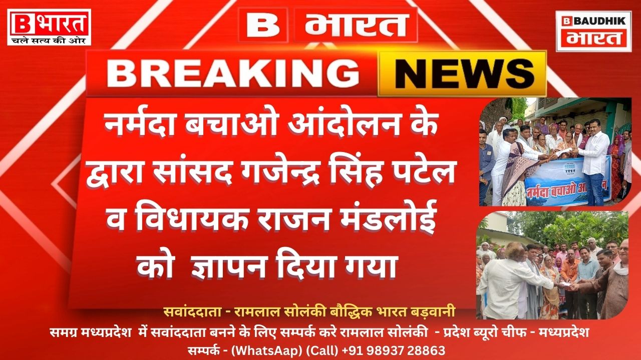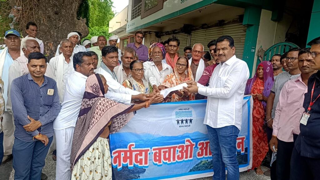 नर्मदा बचाओ आंदोलन के द्वारा खरगोन बड़वानी लोकसभा सांसद गजेन्द्र सिंह पटेल व विधायक राजन मंडलोई को नर्मदा व किसानों के मुद्दे पर ज्ञापन दिया गया