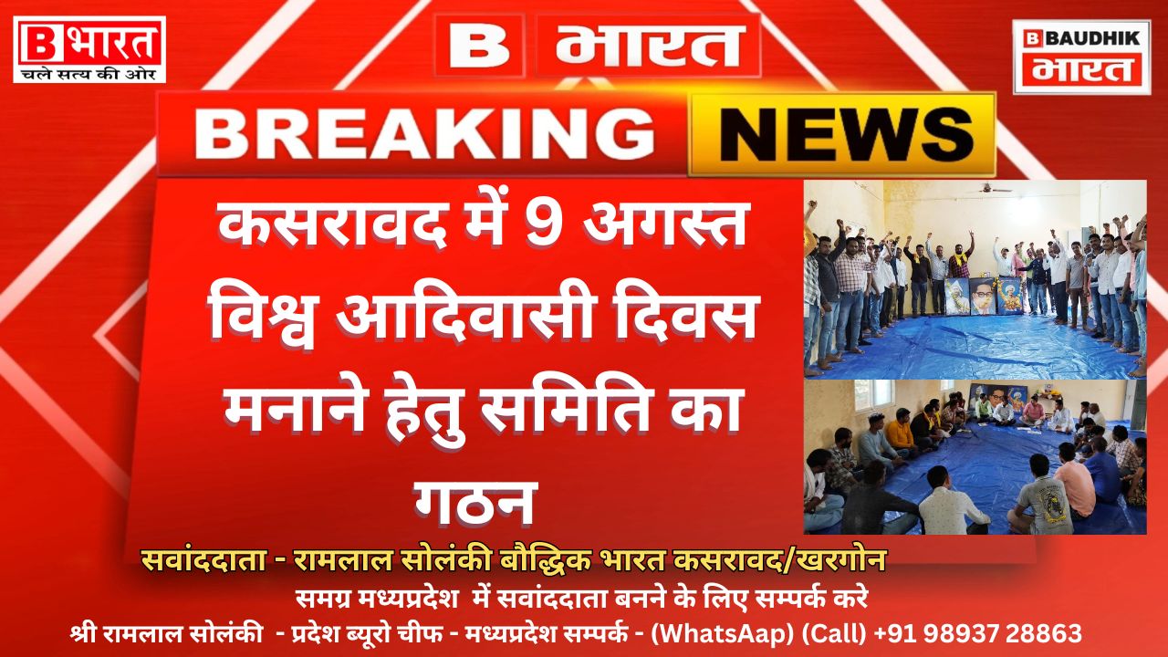 9 अगस्त विश्व आदिवासी दिवस मनाने हेतु तहसील स्तरीय कसरावद समिति गठित की गई