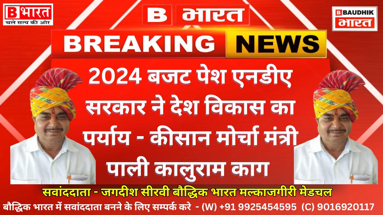 हैदराबाद कोरोमुला :सीरवी समाज बडेर अध्यक्ष कालुराम काग ने केंद्र सरकार का पहला बजट मंगलवार को केंद्रीय वित्त मंत्री निर्मला सीतारमन ने बजट प्रस्तुत किया। बजट को घोषणा को लेकर भाजपाइयों में खुशी की लहर दौड़ उठी एवं एनडीए सरकार के मंगलवार को अपने तीसरे कार्यकाल का पहला बजट बुधवार को संसद में पेश किया। वित मंत्री निर्मला सीतारमण ने संसद में बजट पेश करते हुए कहा कि यह बजट विकास की सौगातों से परिपूर्ण है। बजट को लेकर भारतीय जनता पार्टी किसान मोर्चा मंत्री पाली कालुराम काग से हुए विशेष संवाद में बजट की सराहना करते हुए कहा कि इस बजट में सभी क्षेत्रों के विकास आयामों को सम्मिलित किया है। यह बजट सर्वागिण विकास के पर्याय को सिद्ध करता है। उन्होने बताया की प्रधानमंत्री नरेन्द्र मोदी के नेतृत्व के नवीन सत्र का यह पहला बजट उत्साहवर्धक है। इस बजट में युवाओं को रोजगार, स्टार्टअप को बढ़ावा, सड़क तंत्र को विकसित करना, ऊर्जा के क्षेत्र में नवाचार, प्रधामंत्री आवास योजना, छोटे कारोबारियों को सुविधा, ऋण तथा टैक्स संबंधित सुधार सहित किसानों व आमजन के लिए लाभ से परिपूर्ण और जन हितेषी बजट है। यह बजट विकास और विरासत ध्येय पर विकसित भारत की संकल्पना को साकार करता है। उन्होंने कहा कि मोदी सरकार ने हमेशा की भांति सभी पहलुओं को दृष्टिगत रखते हुए इस बजट की सरंचना तैयार की है। यह बजट विकसित भारत R की संकल्पना के साथ सुदृढ़ और सशक्त की अवधारणा को क्रियान्वित करता है। उन्होंने अपने वक्तव्य में कहा कि वर्तमान में भाजपा की डबल इंजन सरकार का महत्वपूर्ण ध्येय किसानों की आय वृद्धि, युवाओं को S रोजगार, नवीन स्टार्टअप की कार्य योजना, औद्योगिक विकास सहित आमजनों को राहत प्रदान कर उनकी S सुविधाओं को आधुनिकता के साथ विस्तार करते हुए उनको सशक्त करना है।