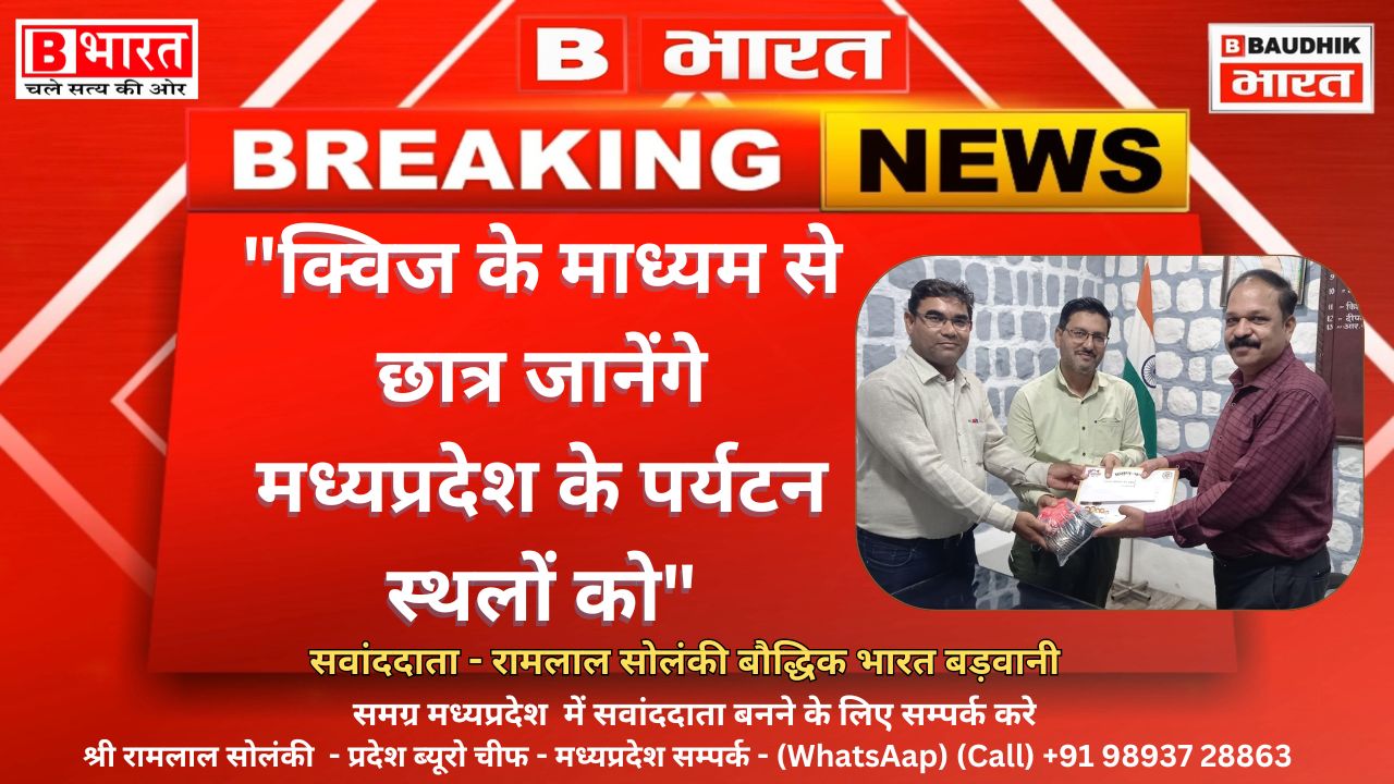 “पर्यटन क्विज प्रतियोगिता 2024 “का आयोजन 27 जुलाई को बड़वानी “बुझो जानो फिर देखो अपना प्रदेश” की थीम पर मध्य प्रदेश के विभिन्न पर्यटन स्थलों को देखने का अद्भूत रोमांचित कर देने वाली यात्रा जो पर्यटन क्विज प्रतियोगिता के माध्यम से छात्रो के लिए आयोजित कि जाती है उसका आयोजन प्रतिवर्ष की तरह इस वर्ष भी 27.07.2024 को शासकीय ई. एफ.ए उत्कृष्ट उमावि क्र.१ बड़वानी में प्रातः 8:30 बजे से किया जावेगा। प्रतियोगिता का आयोजन मध्य प्रदेश टूरिज्म बोर्ड, डी.ए.टी.सी.सी एवं स्कूल शिक्षा विभाग द्वारा किया जा रहा है। क्विज मास्टर अनिल मिश्र ने बताया की सम्पूर्ण मध्य प्रदेश में पर्यटन गतिविधियों को बढ़ावा देने व छात्र-छात्राओ मे पर्यटन स्थलो ज्ञानार्जन के लिए उक्त प्रतियोगिता का आयोजन किया जा रहा है उक्त प्रतियोगिता मे शासकीय व अशासकीय विद्यालयों के छात्र हिस्सा लेगें। प्रतियोगिता दो चरणो मे आयोजित की जावेगी पहली लिखित परीक्षा जिसमे बड़वानी जिले की पंजीकृत कुल 84 विद्यालयो के (प्रत्येक विद्यालय से तीन छात्र व 01 मार्गदर्शी शिक्षक कुल 04) द्वारा सहभागिता की जावेगी लिखित परीक्षा का समय प्रातः 10 बजे से दोप. 12:00 बजे तक होगा। उसके पश्चात् लिखित परीक्षा के परीणाम के आधार पर कुल 06 टीम दूसरे चरण मल्टीमीडिया क्विज दोपहर 2:30 से 4:30 तक कुल 10 राउण्ड का होगा। इस चरण के प्रथम तीन विजेता टीमों को उपहार स्वरूप मध्य प्रदेश के पर्यटन स्थल पर दो रात्रि और तीन दिन का उपहार पैकेज दिया जावेगा तथा तीन उपविजेता टीमों को उपहार स्वरूप जिले के निकटतम पर्यटन स्थल पर एक रात्रि और दो दिवस का उपहार पैकेज दिया जावेगा। उक्त प्रतियोगिता हेतु जिला शिक्षा अधिकारी कार्यालय से जारी पत्र अनुसार श्री आर.एस. जाधव प्राचार्य शासकीय ई.एफ. ए उत्कृष्ट उमावि क्र.1 बढ़वानी को प्रतियोगिता प्रभारी अधिकारी व श्री जगदीश गुजराती को सहा. क्विज प्रभारी बनाकर क्विज के सफल संचालन हेतु कुल 12 समितियों बनाकर विभिन्न दायित्व सौपे गये है। प्रतियोगिता के सफल संचालन हेतु भोपाल मे राज्य स्तर पर क्विज मास्टर की 20.07.2024 को कार्यशाला आयोजित की गई जिसमें प्रतियोगिता के संचालन, गोपनीय सामग्री व मेडलं व प्रमाण पत्र प्रदान किए गए जिसे क्विज मास्टर द्वारा जिले में जिला पर्यटन संवर्धन परिषद् प्रभारी अधिकारी श्री आर.सी.बारोड़ को गोपनीय सामग्री सौपकर क्विज के संचालन संबंधित महत्वपूर्ण जानकारी व कार्यशाला के महत्वपुर्ण बिन्दुओं से अवगत कराया।