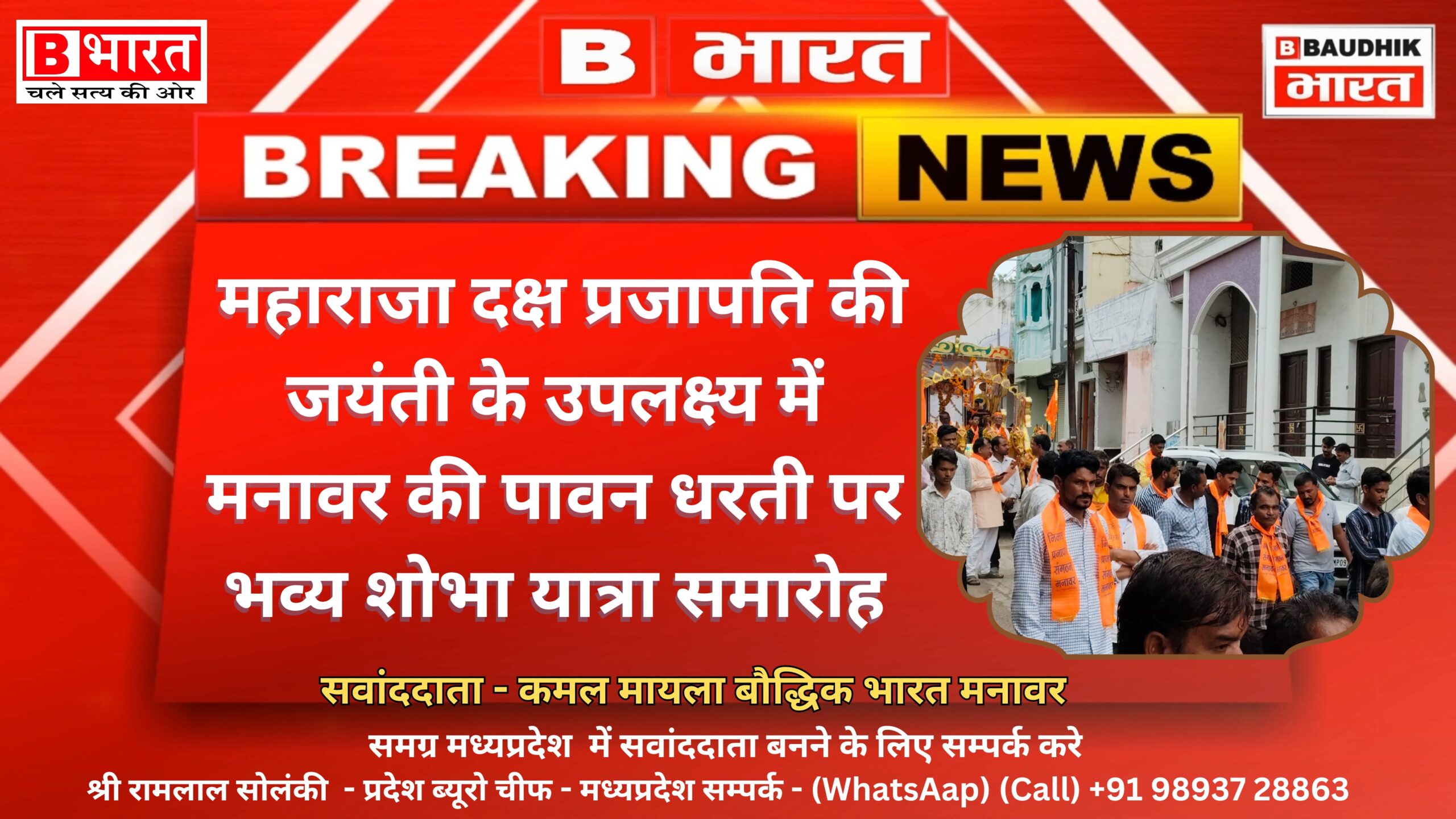 महाराजा दक्ष प्रजापति की जयंती के उपलक्ष्य में मनावर की पावन धरती पर भव्य शोभा यात्रा समारोह