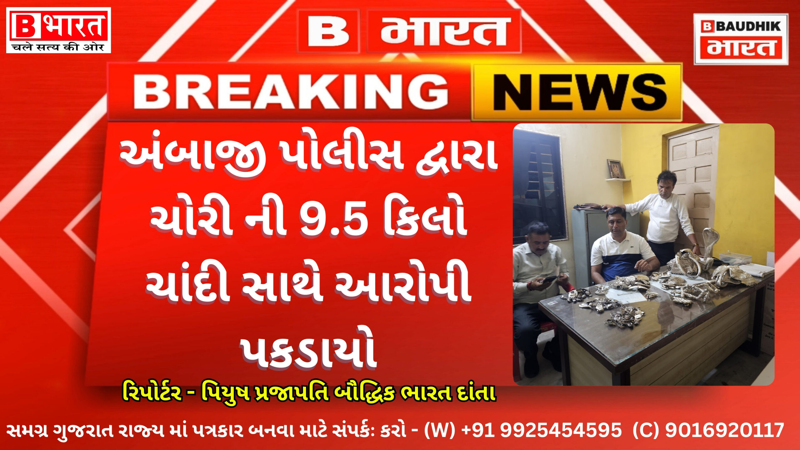 અંબાજી પોલીસ દ્વારા ચોરી ની 9.5 કિલો ચાંદી સાથે આરોપી પકડાયો, અંબાજી પોલીસ ના હેડ કોન્સ્ટેબલ જયકરન ગઢવી એ બાતમી ના આધારે 8 લાખ ના મુદ્દામાલ સાથે આરોપી ને પકડ્યો, રાજસ્થાન થી ગુજરાત ચાંદી ગાળવા જતો અંબાજી ખાતે પકડાયો અંબાજી પોલીસે છાપરી ચેકપોસ્ટથી ગઈ મોડી રાત્રે 9.5 કિલો ચાંદી સાથે એક આરોપી ને જડપી પડ્યો હતો. 8 લાખ કિંમત ની ચાંદી અને કાર ની એમ કુલ મુદ્દામાલ જપ્ત કરવામાં આવ્યો હતો. આરોપી સુરેશકુમાર શાંતિલાલ સોનીની ઘરપકડ કરવા મા આવી હતી. આરોપી પોતાની કારમાં ચોરીની ચાંદી લઈ જતો હતો ત્યારે અંબાજી પોલીસને બાતમી મળતા ચેક પોસ્ટ ઉપર ચેકીંગ દરમિયાન પકડાયો હતો. અંબાજી પોલીસ સ્ટેશનના હેડ કોન્સ્ટેબલ જય કરણ ગઢવીએ આ ચોરી નો માલ લઇ જતો આરોપી ને પકડ્યો હતો.ગઈ મોડી રાત્રે રાજસ્થાન થી ગુજરાત મા લઈ જતો ચોરીનો માલ નો આરોપી રાજસ્થાન ના સિરોહી જિલ્લા ના ગોયલી ગામ નો રહેવાસી છે. થરાદ પાસેના ગામથી અગાઉ 9.5 કિલો ચાંદીની ચોરી થઈ હતી. અને રાજસ્થાન ના પિંડવાડા પાસેના માલપ ગામના સોમારામ પાસેથી આરોપીએ ચોરેલી ચાંદી ખરીદી હતી. આરોપી અમદાવાદ ચાંદી ગાળવા જતા અંબાજી પાસે પકડાયો હતો. સુરેશકુમાર સોની અગાઉ પણ ચોરીની વસ્તુ ખરીદી હતી તેની પણ કબુલાત કરી હતી. ચોરી કરેલા માલ અને આરોપી ને અંબાજી પોલીસ મથકે લાવવામાં આવ્યો હતો અને અંબાજી પોલીસ વધુ તપાસ કરી રહી છે. આરોપી જોડે થી કબ્જે કરેલા મુદ્દા માલ મા 1.5 લાખ કાર ની કિંમત અને 6.5 લાખ ચાંદી ની કિંમત એમ કુલ મળીને 8,00,000 લાખ નો મુદ્દામાલ કબ્જે કરાયો છે.