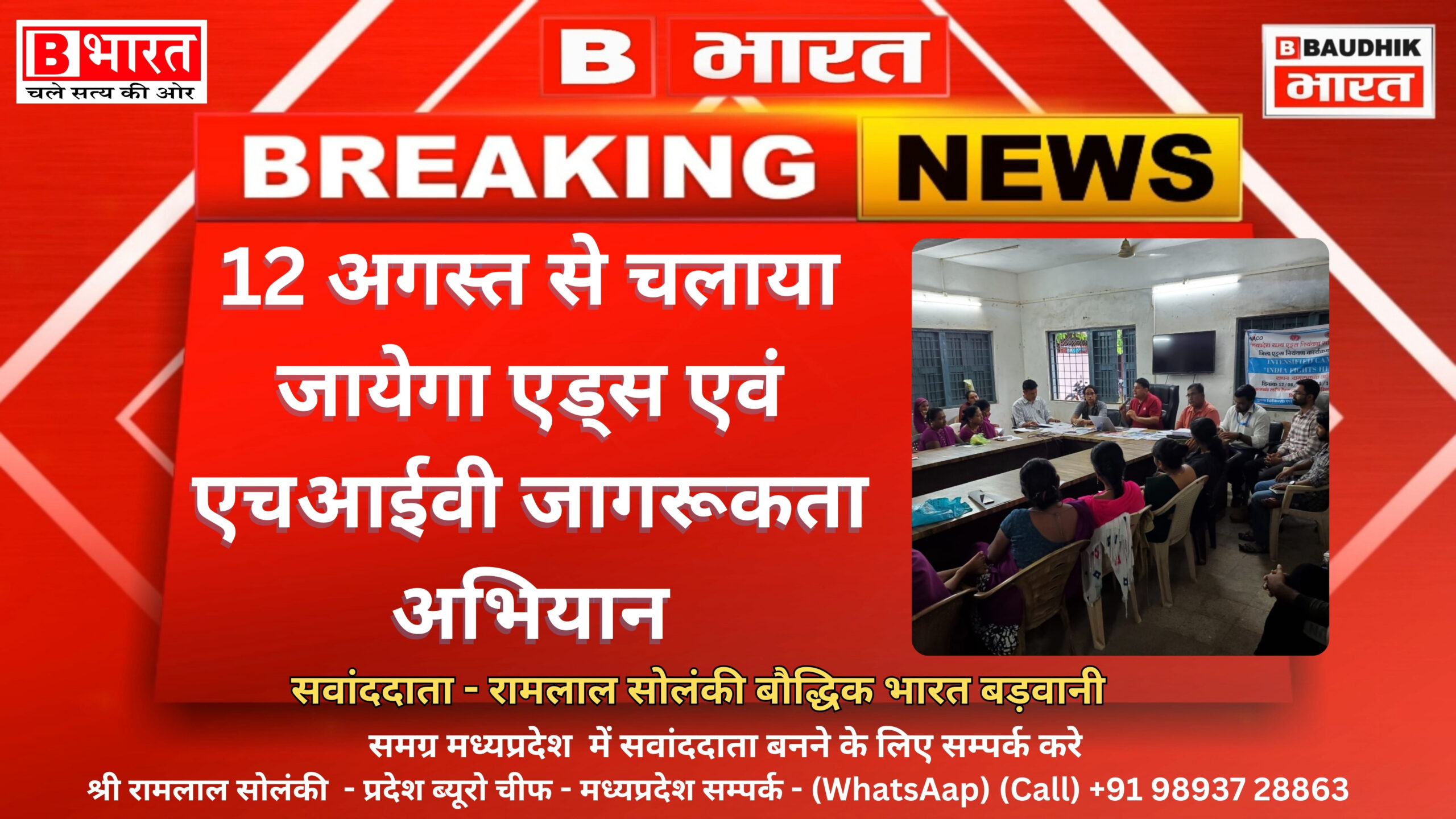 बड़वानी 29 जुलाई 2024/विाकसखण्ड पानसेमल में विकासखंड स्तरीय बैठक का आयोजन सोमवार को जिला नोडल अधिकारी एड्स नियंत्रण कार्यक्रम डॉ प्रमोद गुप्ता की अध्यक्षता में किया गया। संपूर्ण जिले में एचआईवी एवं एड्स जागरूकता हेतु 12 अगस्त 2024 से 11 अक्टूबर 2024 तक चलने वाले सघन जागरूकता अभियान के संबंध में होने वाली विभिन्न गतिविधियों के संबंध में चर्चा की गई । बैठक में डॉक्टर अमृत बमनके बीएमओ विकासखंड पानसेमल, श्री आलोक रंजन मौर्य, दिशा इंदौर श्री मयंक अग्रवाल दिशा इंदौर, राकेश बर्डे बीपीएम, मनु जैन फार्मासिस्ट, मुकेश बेनल आईसीटीसी परामर्शदाता, शांतिलाल सोलंकी आईसीटीसी लैब टेक्नीशियन, शिवेंद्र तोमर डीआरपी लिंक वर्कर स्कीम एवं समस्त स्वास्थ्य कार्यकर्ता उपस्थित रहे।