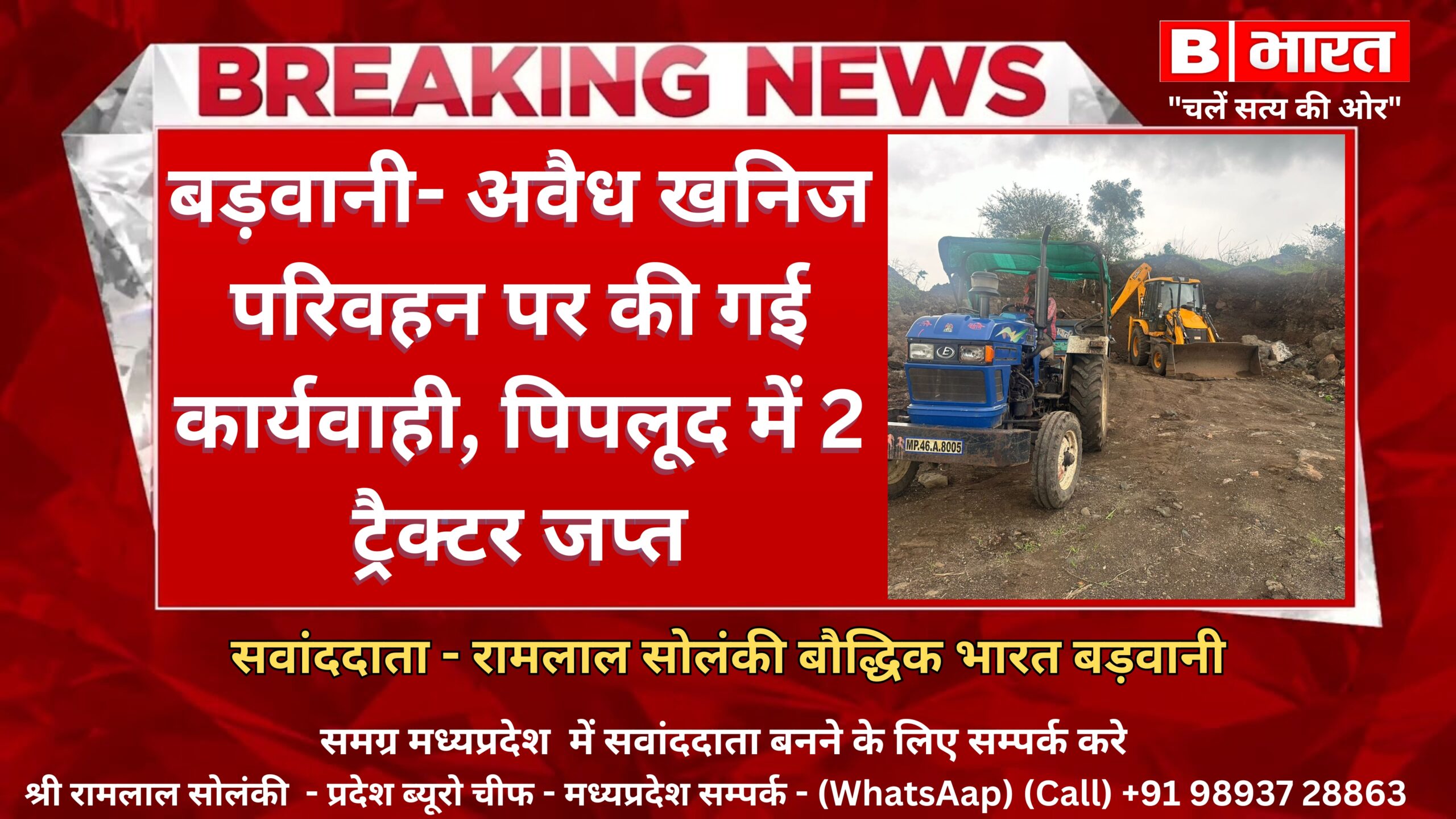 बड़वानी 01 अगस्त 2024/कलेक्टर डॉ. राहुल फटिंग के निर्देशन में राजपुर क्षेत्र में 01 अगस्त को अवैध खनिज परिवहन की आकस्मिक जाँच खनिज विभाग बड़वानी के द्वारा की गई। जाँच के समय 1 जे.सी.बी एंव 2 ट्रेक्टर ट्रॉली मुरूम अवैध का उत्खनन/परिवहन करते पाये जाने पर जप्त कर राजपुर थाने की सुरक्षा में खड़े किये गये। वही पिपलूद में 2 ट्रैक्टर रेत का अवैध का उत्खनन/परिवहन करते पाये जाने पर जप्त कर कलेक्ट्रेट कार्यालय परिसर बड़वानी की सुरक्षा में खड़े किये गए ।