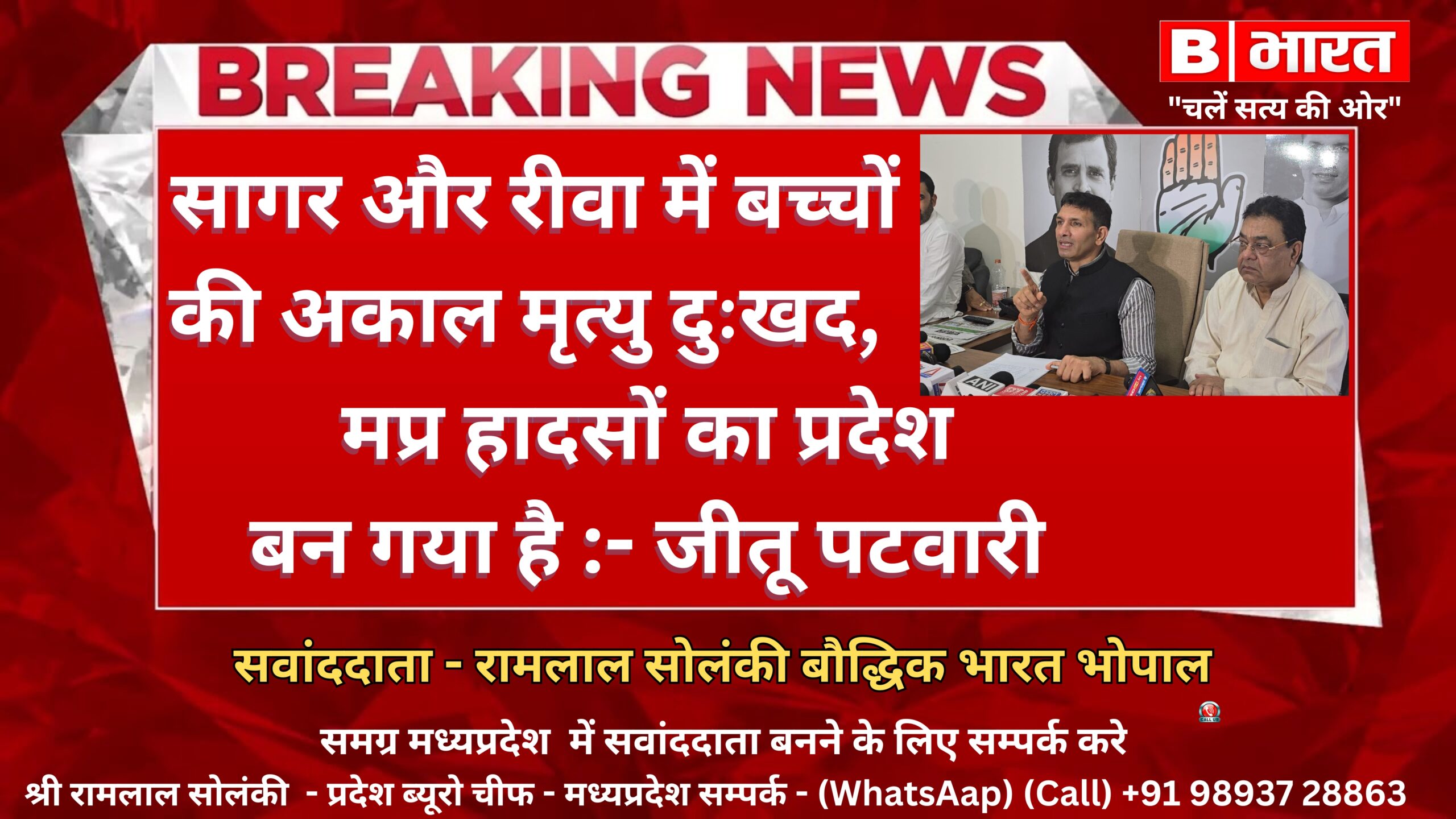 भोपाल, 04 अगस्त 2024- प्रदेश कांग्रेस अध्यक्ष जीतू पटवारी ने पत्रकार वार्ता के माध्यम से कहा कि मप्र की सरकार पूरे देश से अलग सरकार है, जिसमें पिछले 10 साल में शिक्षा के क्षेत्र में निरंतर कमी आयी है। शिक्षा के लिए 10 साल में बढ़कर सीधा दोगुना यानि 32 हजार करोड़ का बजट किया गया है, लेकिन इन सालों में बच्चों की संख्या 50 लाख घट गई है। भाजपा सरकार का चेहरा तीन आंकड़े बताता हैं, जनसंख्या बड़ी, स्कलों में बच्चों की संख्या घटी और मुख्यमंत्री विज्ञापन और इवेंट में व्यस्त हैं। रोज अखबारों में देखते हैं कहीं स्कूलों के पास नाला बह रहा है, स्कूलों के पास में गटर हैं, डेंगू फेल रहा हैं, कहीं झाड के नीचे बच्चों को पढ़ाया जा रहा है, कहीं भवन विहीन स्कूल हैं, कहीं शिक्षक हैं पर बच्चे नदारद है तो कहीं दो-दो सौ बच्चे हैं लेकिन शिक्षक नदारद है। शहरी क्षेत्रों में शिक्षकों की अधिकता और ग्रामीण सुदूर अंचलों में शिक्षकों का अभाव है और मुख्यमंत्री इंवेट में व्यस्त रहते हैं। पटवारी ने कहा कि रीवा में जो घटना हुई है वह घटना-दुर्घटना नहीं, सरकार द्वारा की गई बच्चों की सरकारी हत्या है। रीवा के गढ़ में एक जर्जर दीवार गिरने से 4 बच्चों की अकाल मृत्यु बेहद दर्दनाक है। ऐसे ही सागर में बच्चों के साथ जो दुर्घटना हुई वह प्रशासन की लापरवाही का इससे बड़ा उदाहरण ओर क्या हो सकता है। सागर जिले के शाहपुर ब्लाक में शिवलिंग निर्माण के दौरान कार्यक्रम स्थल की दीवार गिरने से 9 बच्चों की मौत हो गई और 4 बच्चे जीवन और मृत्यु से संघर्ष कर रहे हैं। मुख्यमंत्री जी एक तरफ आप इंवेट करते हैं मीडिया और अखबारों की सुर्खियां बटोरते हैं। विज्ञापन देते हैं और दूसरी तरफ बच्चों की सरकारी तंत्र द्वारा हत्या होती है, इसके दोषी मुख्यमंत्री मोहन यादव जी है। यह प्रदेश हादसों का प्रदेश बन गया है। श्री पटवारी ने कहा कि मप्र में तीन सी की सरकार चल रही है कर्ज, क्राईम और करप्शन। भाजपा के नेताओं और अधिकारियों द्वारा किये जा रहे भ्रष्टाचार की बयार बह रही है। सरकार कर्ज लेने में पीछे नहीं हटती और इंवेट करके उस कर्ज का खर्च करने में भी पीछे नहीं हटती। पच्चीस विभागों पर बजट की राशि से खर्च पर रोक लगा दी गई है। आर्थिक अराजकता की स्थिति मप्र में निर्मित हो चुकी है। बच्चों की हुई सरकारी हत्या पर मप्र सरकार की मैं निंदा करता हूं। कांग्रेस पार्टी मांग करती है कि बच्चों की सरकारी हत्या और स्कूली शिक्षा को लेकर मोहन यादव सरकार श्वेत पत्र जारी करे। पत्रकार वार्ता के दौरान प्रदेश कांग्रेस मीडिया विभाग के अध्यक्ष मुकेश नायक भी उपस्थित थे।