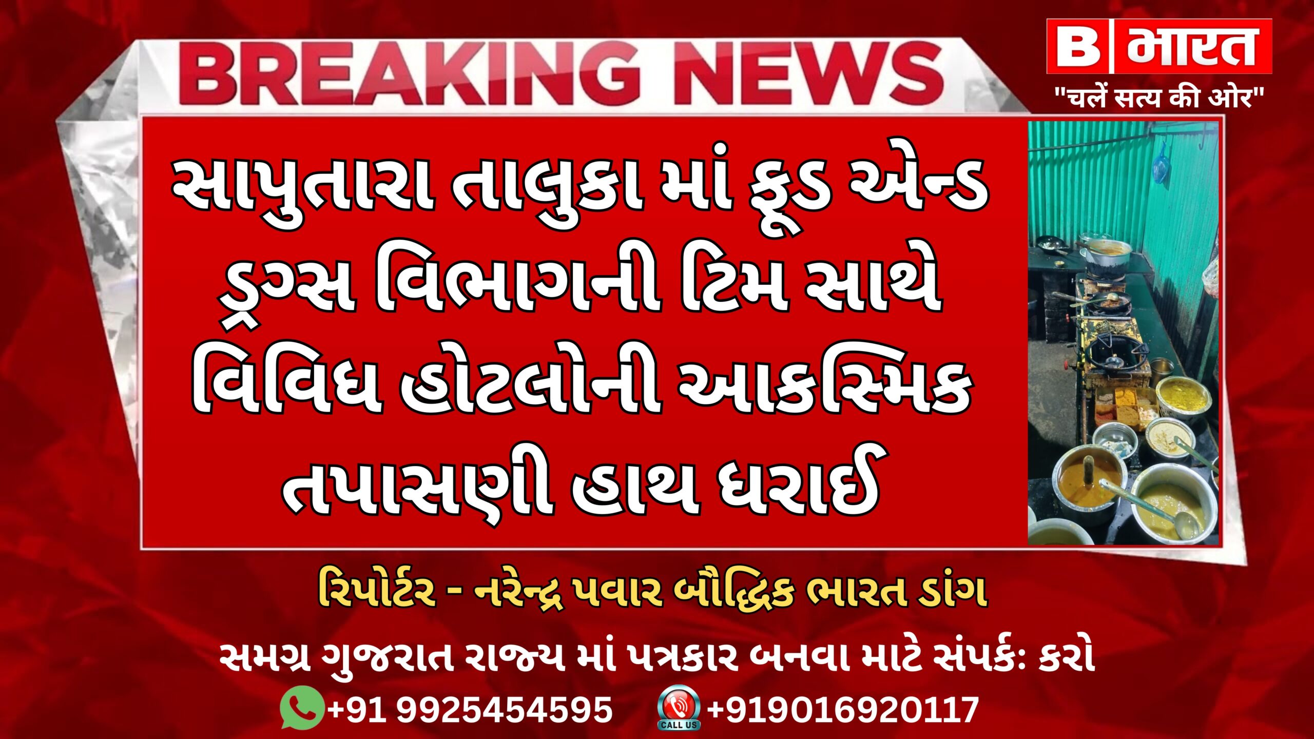 સાપુતારાના તાલુકામાં તા: 04-08-2024 ચીફ ઓફિસર, નોટિફાઇડ એરિયા, સાપુતારાના માર્ગદર્શન હેઠળ, નોટીફાઈડ એરિયા કચેરી-સાપુતારા અને ફૂડ એન્ડ ડ્રગ્સ વિભાગ-વલસાડની ટિમે, સંયુક્ત રીતે ગિરિમથકની વિવિધ હોટલોની આકસ્મિક તપાસણી હાથ ધરી હતી.દરમિયાન જાહેર જનતાના સ્વાસ્થ્યની ચિંતા કરતા આ પ્રશાસનિક ટીમે કુલ રૂપિયા ૩૧ હજાર ૩૮૯ ની કિંમતના ખાદ્ય સામગ્રીના જથ્થાનો નાશ કર્યો હતો. જ્યારે ૧૨ જેટલા સેમ્પલો પણ એકત્ર કરી, લેબોરેટરીમાં રવાના કરાયા હતા. આ ચકાસણીમાં ધ્યાને આવેલી ક્ષતિઓની પૂર્તતા કરવા માટે સંબંધિત દુકાનોના સંચાલકોને તાકીદ પણ કરવામાં આવી છે. ચીફ ઓફિસર શ્રી સાગર મોવાલિયાના માર્ગદર્શન હેઠળ નાયબ મામલતદાર શ્રી પી.વી.પરમાર તથા ફૂડ એન્ડ ડ્રગ્સ વિભાગ-વલસાડના સેફટી ઓફિસર સર્વશ્રી કે.જે.પટેલ, સી.એન.પરમાર તથા આર.એમ.પટેલની સંયુક્ત ટીમે સાપુતારાની ૯ જેટલી હોટલો, ઉપરાંત પાંચ જેટલી લારીઓની આકસ્મિક તપાસણી હાથ ધરી હતી. જે પૈકી ચાર હોટલોમાંથી ચટણી, વાસી ખરાબ બોઈલ શાકભાજી, ખરાબ કાંદા બટાકા, લસણ, બ્રેડ, પનીર, ફુડ કલર આઈટમ, છાસ, દૂધ મળી કુલ કીમત રૂપિયા ૩૧ હજાત ૩૮૯ ના ૧૨૩ કિલોગ્રામ ખાદ્ય સામગ્રીના જથ્થાનો સ્થળ ઉપર જ નાશ કર્યો હતો.
