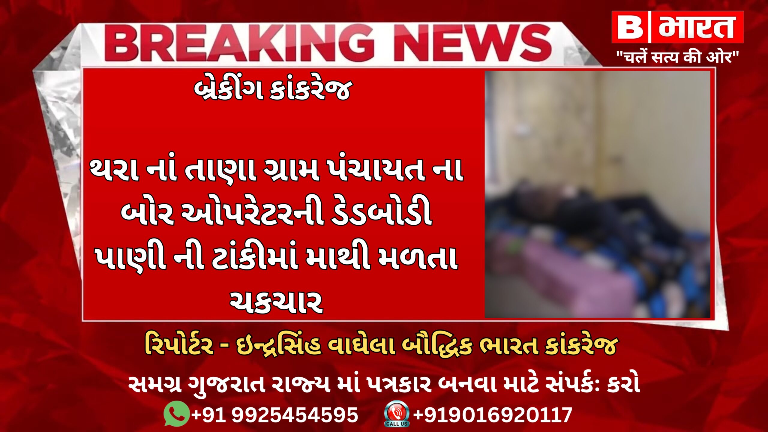 કાંકરેજ તાલુકાના વેપારી મથક થરા નાં તાણા ગ્રામ પંચાયત ના બોર ઓપરેટરની ડેડબોડી પાણી ની ટાંકીમાં માથી મળતા ચકચાર