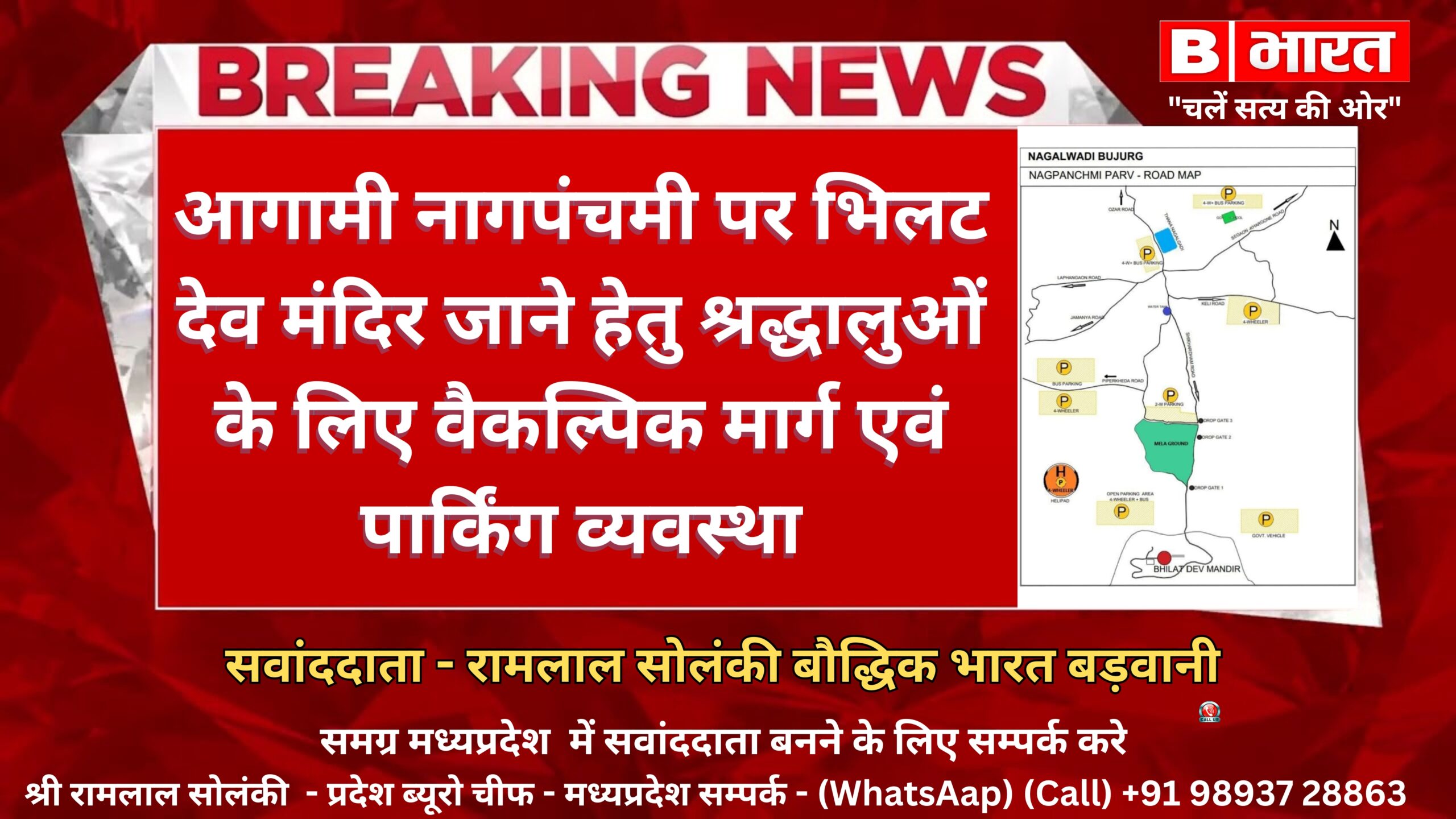श्रीमान पुलिस अधीक्षक महोदय के आदेश अनुसार आगामी 09 अगस्त 2024 को नागपंचमी पर्व पर नागलवाड़ी भिलटदेव मंदिर दर्शन करने जाने वाले श्रद्धालुओं की सुविधा के लिए प्रशासन द्वारा मार्ग में कुछ संशोधन किए गए हैं जो निम्न है- गवा घाटी की ओर से प्रवेश एकल मार्ग से मंदिर दर्शन करने आने वाले श्रद्धालुओं को दर्शन के पश्चात अंबाजी फ्यूल्स पेट्रोल पंप ओझर से घुसगांव रुई होते हुए जुलवानिया सेगांव तरफ जाने हेतु निर्गम एकल मार्ग की व्यवस्था की गई है, सेगाव खरगोन से मंदिर दर्शन करने आने वाले श्रद्धालुओं के लिए प्रवेश एकल मार्ग शेगाव रोड हाई स्कूल से चौघड़ियापूरा से केली रोड होते हुए मंदिर दर्शन के लिए जाना है, मंदिर से दर्शन के पश्चात खरगोन से गांव जाने वाले श्रद्धालु कस्बा नांगलवाड़ी से होते हुए निर्गम एकल मार्ग से सेगाव रोड पर निकलेंगे , सेंधवा ,धनोरा, चाचरिया की ओर से पिपरखेड़ा रोड होकर आने वाले श्रद्धालुओं को नांगलवाड़ी ग्राम के दशहरा मैदान पानी टंकी के पास से प्रवेश एकल मार्ग से होते हुए दर्शन करने के लिए जाना है, नांगलवाड़ी दशहरा मैदान पानी की टंकी से भिलटदेव मंदिर गार्डन तक जाने के लिए सिर्फ प्रवेश एकल मार्ग रहेगा, नांगलवाड़ी भिलट देव मंदिर गार्डन के पास स्थित हेलीपैड से पिपरखेड़ा होते हुए नांगलवाड़ी तक आने के लिए सिर्फ निर्गम एकल मार्ग रहेगा l