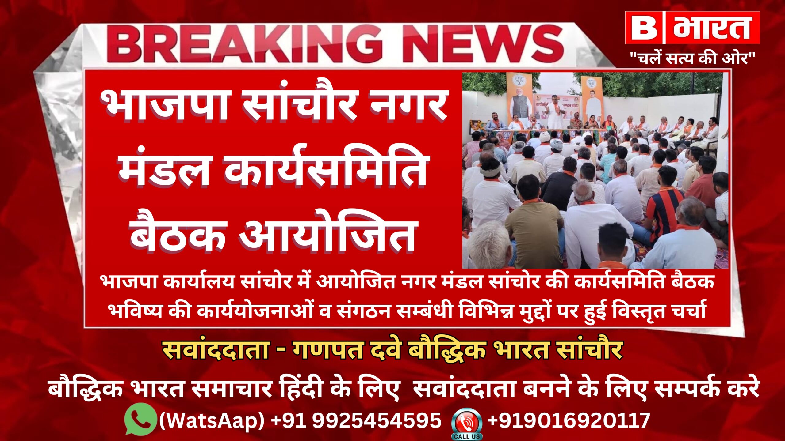 भाजपा कार्यालय सांचोर में आयोजित नगर मंडल सांचोर की कार्यसमिति बैठक, भविष्य की कार्ययोजनाओं व संगठन सम्बंधी विभिन्न मुद्दों पर हुई विस्तृत चर्चा