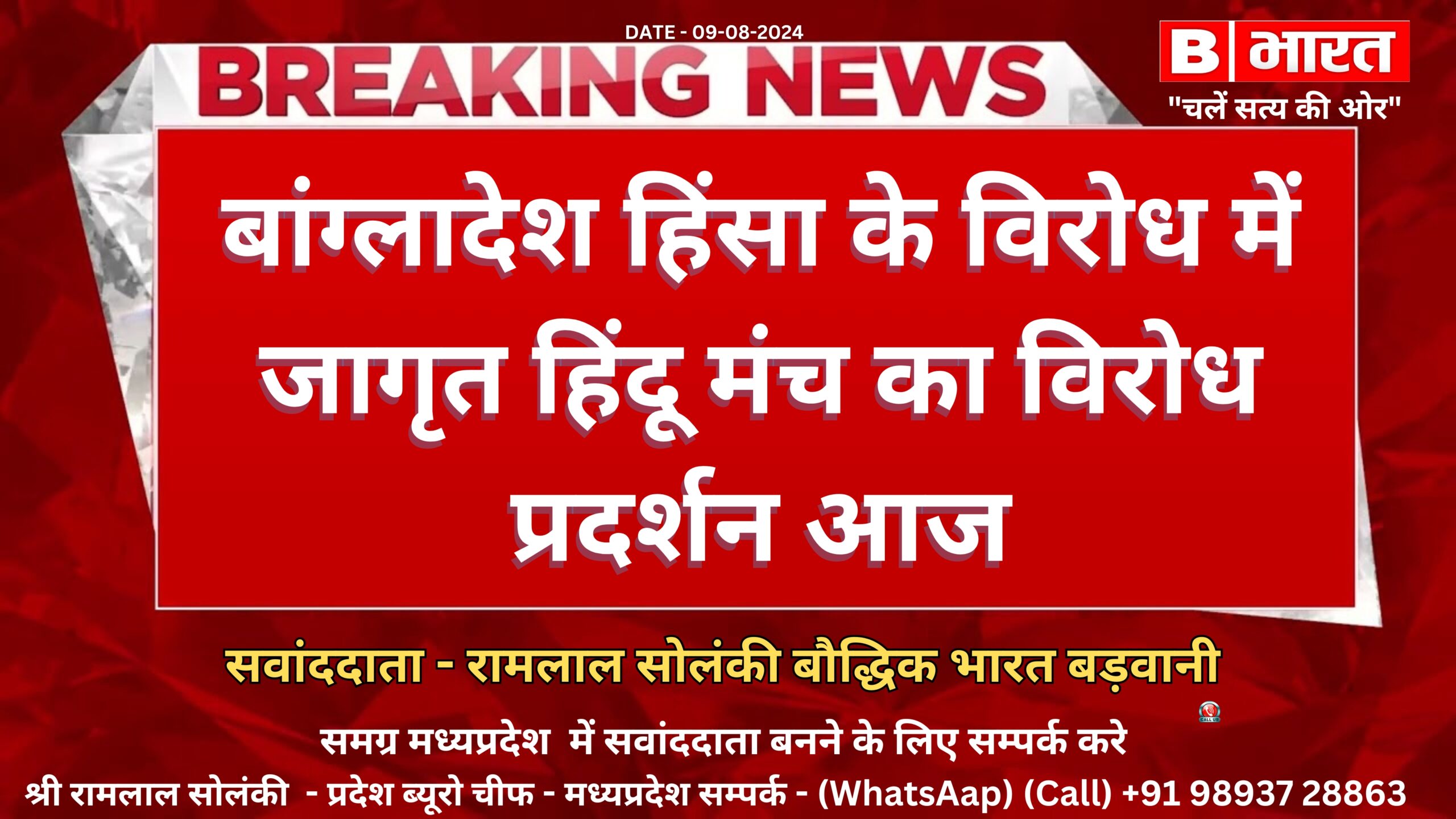 बड़वानी :- बांग्लादेश में हुए सत्ता परिवर्तन के बाद घटित घटनाक्रम में हिंदू एवं अन्य अल्पसंख्यकों के विरुद्ध हो रही हिंसा, महिलाओं के साथ बलात्कार, बच्चों के विरुद्ध अत्याचार के विरोध में जागृत हिंदू मंच के तत्वावधान में एक दिवसीय धरना कार्यक्रम एवं महामहिम राष्ट्रपति के नाम ज्ञापन सौंपकर केंद्र सरकार से बांग्लादेश सरकार के समक्ष हिंदुओं पर हो रहे अत्याचार को रोकने की मांग की जायेगी, साथ ही बांग्लादेशी एवं रोहिंग्या घुसपैठियों को भी देश से बाहर भेजने की मांग की जायेगी। हिंदू जागृत मंच बड़वानी नगर के नागरिकों से निवेदन करता है कि अधिकाधिक संख्या में शामिल होकर अपनी सहभागिता दर्ज करवाकर हिन्दू एकता का परिचय देवे ।