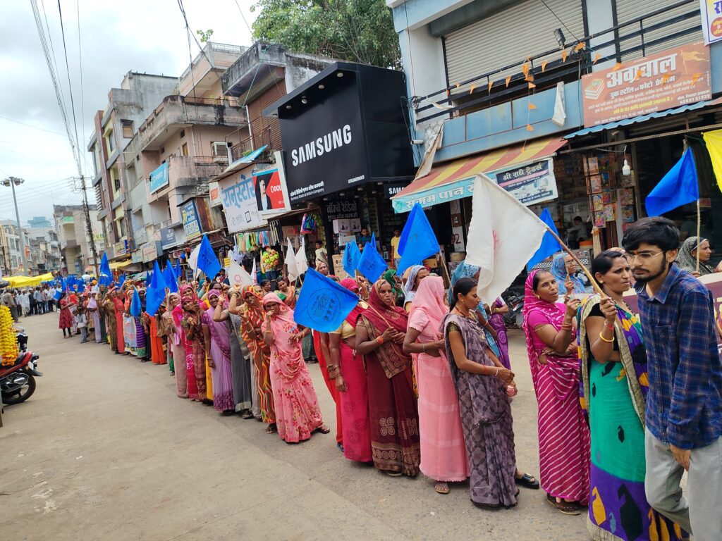नर्मदा घाटी के सरदार सरोवर से विस्थापित हजारों की संख्या में बड़वानी, धार, खरगोन और अलीराजपुर जिले से तथा महाराष्ट्र से सैकड़ो की तादाद में और गुजरात के प्रतिनिधी भी एकत्रित आकर विशाल रैली से निकल पड़े! शहिद स्तंभ पर शहीदों को फूलहार और नमन करने में शामिल थे, पर्यावरणवादी उड़ीसा के प्रफुल्ल सामंतरा, बंगाल के प्रदीप चटर्जी, राजस्थान के निखिल डे, जलवायु विशेषज्ञ सौम्या दत्ता जी व अन्य तथा आंदोलनकारी विस्थापित भी बैलगाड़ी पर प्रमुख अतिथीयों को बिठाकर, हजारों की रैली पैदल चलकर बड़वानी शहरवासियों को ऐलान करते हुए, गूंजते हुए नारों के साथ नवलपुरा में यादव सभागृह पहुंची, जहां जनसभा का आयोजन हुआ| भादल (तह. जिला बडवानी) के आदिवासी बच्चों के नृत्य से ही रैली और सभा भी सजायी गयी, नर्मदा आंदोलन के 39 साल पूरे होने पर तथा द्वार पर खड़ा सरदार सरोवर का जलस्तर, संभावित डूब तथा नदी के प्रदूषित जल की चुनौतियों को उजागर करने का यह विशेष कार्यक्रम एक चेतावनी भरा रहा! दस राज्यों से आये तमाम अतिथीयों में पर्यावरणवादी नदियों की सुरक्षा पर कार्यरत रहे, नीति/ कानून निर्माण और सत्याग्रही संघर्ष के साथ कार्यरत वरिष्ठ कार्यकर्ता भी थे| आदिवासी किसान, मजदूर, मछुआरे, सभी समुदायों को न्याय दिलाने वालों की उपस्थिती से घाटी के जनजन नर्मदा और देश की नदियाँ, नदी घाटियाँ बचाने के लिए संकल्पित हो उठे।