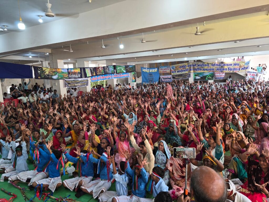 सरदार सरोवर के डूबग्रस्तों की ओर से कैलाश यादव और कमला यादव ने स्वागत करने बाद श्यामा भारत मछुआरा, सुशीला नाथ, मुकेश भगोरिया, राहुल यादव, पहाड़ी पट्टी के नूरजी वसावे और शैलेश तडवी आदि ने यहां की चुनौतियां बयां की| 2023 में आयी डूब, बिना संपूर्ण पुनर्वास होते हुए अवैध है इसलिए नुकसान की राहत उर्वरितों को मिले और संपूर्ण नुकसान भरपाई सबको मिले, इस मांग के साथ, पुनर्वास पूरा होने तक जलस्तर रोकने की जरूरत और उसके लिए लडने का संकल्प घोषित किया| मछुआरों को जलाशय पर ठेकेदारी नहीं, प्रस्तावित सहकारी संघ का पंजीयन चाहिये तो 15946 ‘डूब के बाहर’ किये परिवारों को और अन्यों को उर्वरित पुनर्वास के लाभ चाहिये, यह आवाज उठायी| कुम्हार, केवट, उर्वरित दुकानदार और गुजरात या मध्य प्रदेश में अनुपजाउ अतिक्रमित जमीन आबंटन में फंसाए लोगों के हक की बात भी उठी! नावड़ाटोली, धरमपुरी, गाजीपुरा से लेकर धनोरा, जांगरवा, बिजासन तक तथा अलीराजपुर, बडवानी, धार के पहाड़ी गावों तक परिवार पुनर्वास बाकी होते हुए 40 वे साल में भी संघर्ष जारी रखेंगे, हक लेके रहेंगे, महाराष्ट्र से पधारे सैकड़ों आदिवासियों की ओर से नुरजी वसावे और लतिका राजपूत ने शासन की असंवेदना पर सवाल उठाया| जल, जंगल, जमीन पर आदिवासियों का हक, ‘पेसा’ कानून का पालन, देशभर नकारा जाता है, तभी विकास के नाम पर विनाश होता है, यह बताया| नर्मदा बचाओ आंदोलन के सरदार सरोवर में जो पाया है, उसके आगे भी संघर्ष होगा, और हम निर्माण का कार्य भी आगे बढ़ाएंगे- हमारी जीवन शालाओं से स्वास्थ्य, राशन, किसान को हर उपज का सही दाम, आदि मुद्दों पर भी आवाज उठाएंगे, नवनिर्माण के लिए यह कहा| चेतन साल्वे ने महाराष्ट्र, मध्यप्रदेश और गुजरात की, पुरी नर्मदा की संस्कृति और प्रकृति बचाने के लिए एकता और समता के, अहिंसक मार्ग पर चलेंगे यह भी जाहिर किया, राजस्थान से आये निखिल डे और शंकर भाई सूचना अधिकार, मनरेगा, स्वास्थ्य सेवा, गिग वर्कर्स, जवाबदेहिता आदि पर कानून निर्माण में, अरुणा रॉय जी के साथ, अहम भूमिका निभाने वाले रहे है| निखिल डे ने कहां की 39 साल तक संघर्ष से नर्मदा आंदोलन ने जो हासिल किया, वह शासन के साथ केवल संघर्ष से ही नहीं, संवाद से भी! शासन की संवेदनशीलता और जवाबदेहिता नहीं होती है तो समस्याओं का निराकरण नहीं होता है| नर्मदा आंदोलन जैसा 39 साल का अनुभव देखकर ‘शासन की जवाबदेहिता’ पर राष्ट्रीय और राज्य स्तरीय कानून बेहद जरूरी है! मनरेगा जैसी योजना पर भी शासन बजट कम कर रही है तो रोजगार बढ़ाये बिना आदिवासी, किसान, मजदूर, मछुआरे, सभी की आजीविका छिनना, डुबाना बहुत बड़ा अन्याय है| इसीलिए किसान विरोधी, श्रम विरोधी कानूनों का विरोध तो हमने करना ही चाहिए लेकिन सही कानून, जैसे नदी बचाने के लिए, लाने के लिए भी जागृ