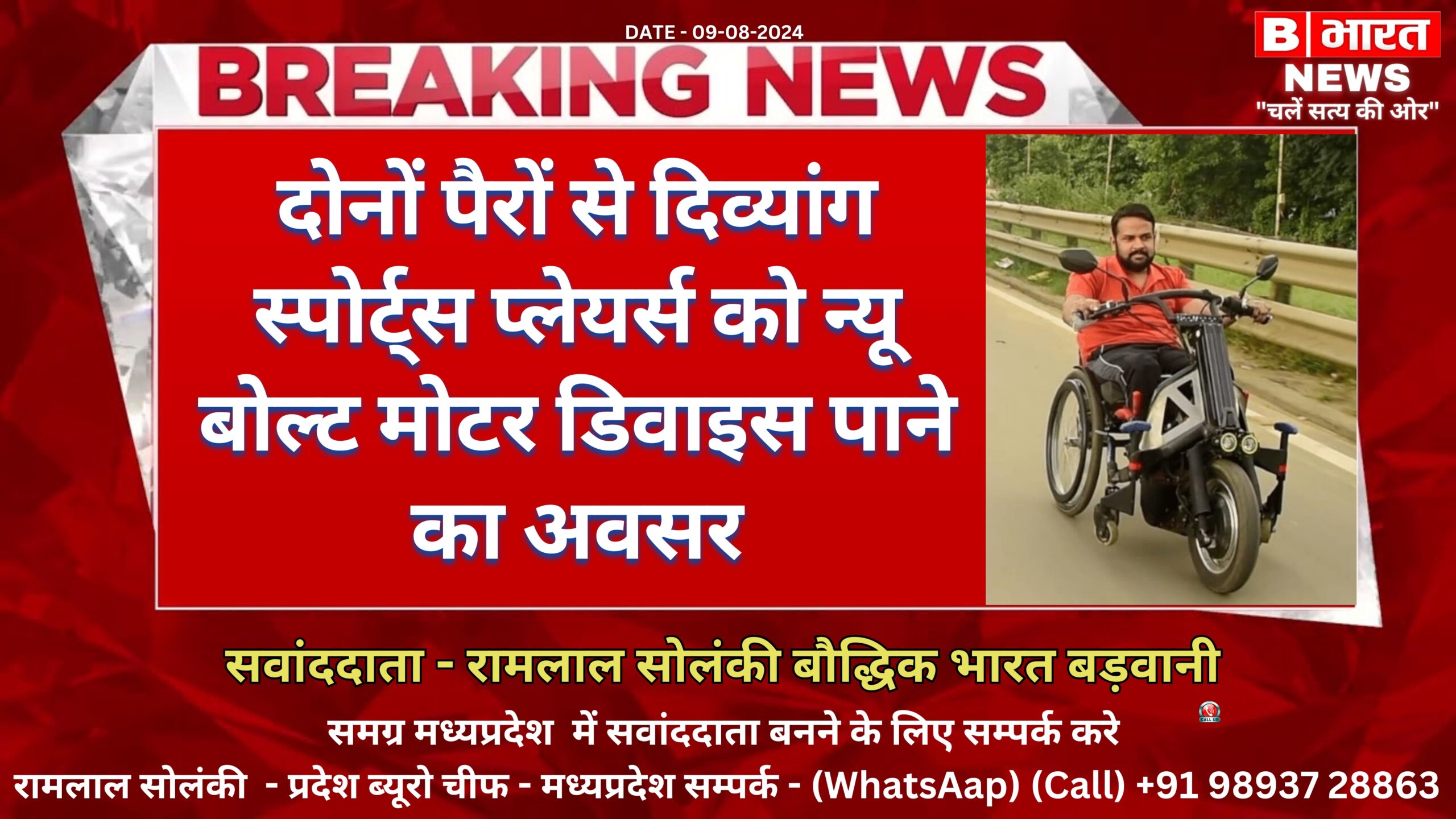 दोनों पैरों से दिव्यांग स्पोर्ट्स प्लेयर्स को न्यू बोल्ट मोटर डिवाइस पाने का अवसर