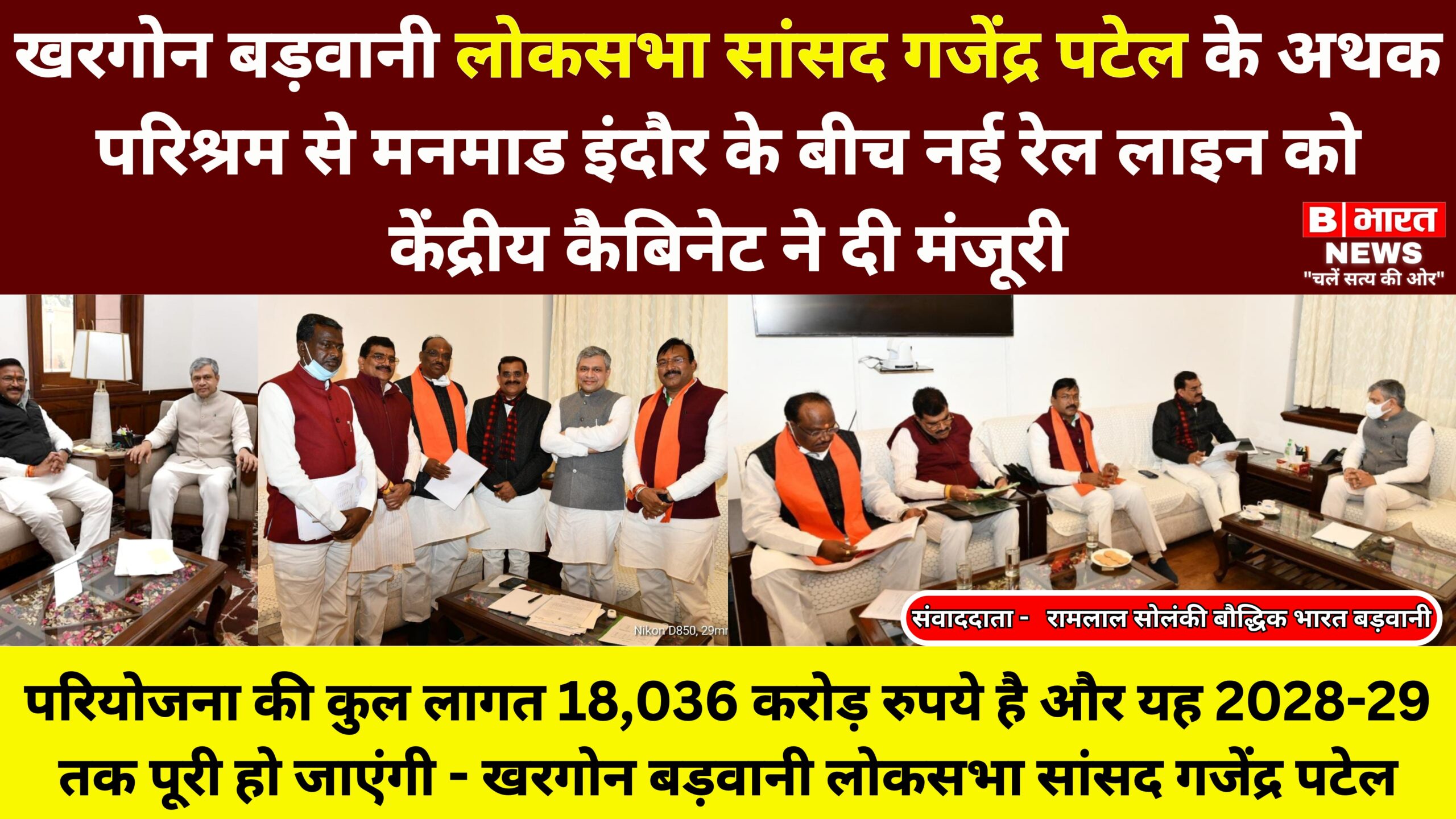 खरगोन बड़वानी लोकसभा सांसद गजेंद्र पटेल के अथक परिश्रम से मनमाड इंदौर के बीच नई रेल लाइन को केंद्रीय कैबिनेट ने दी मंजूरी