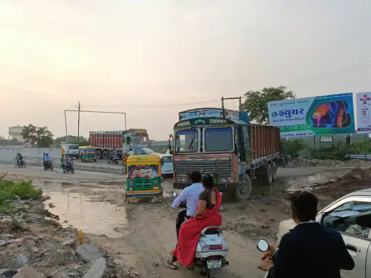 ટ્રક આવતા બંને સાઈડના વાહનો રોકાવા મજબુર
