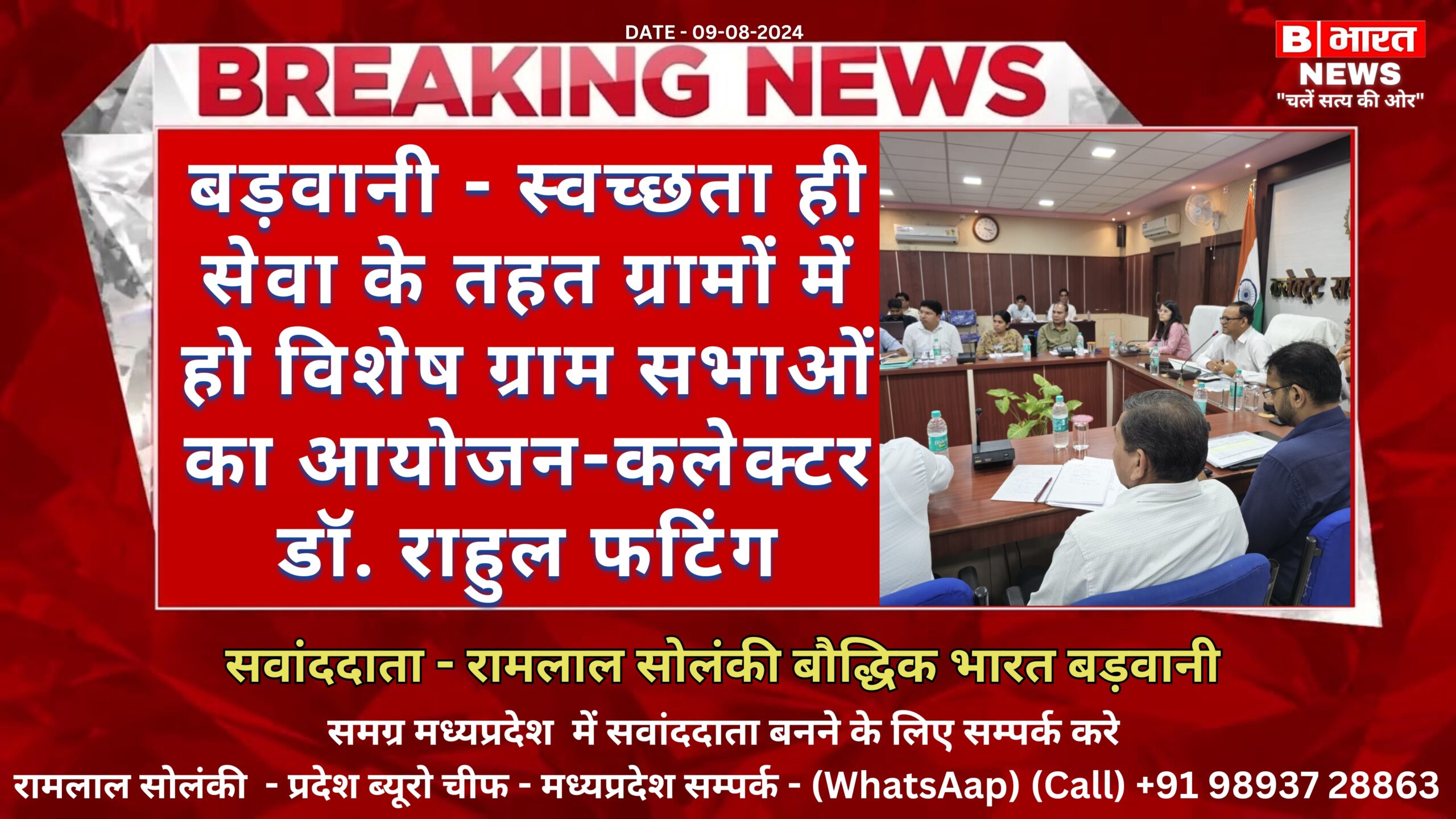 बड़वानी 09 दिसम्बर 2024/ स्वच्छता ही सेवा है जिसे प्रत्येक व्यक्ति ने अपनी दिनचर्या का हिस्सा बनाना चाहिए हमें स्वच्छता को केवल अपने घर आंगन तक ही सीमित न रखकर आसपास के परिवेश सार्वजनिक स्थलों कार्य स्थलों सभी को स्वच्छ रखने के लिए पहल करनी होगी तभी स्वच्छता सेवा के रूप में सभी की आदत बन सकेगी।कलेक्टर डॉ. राहुल फटिंग ने उक्त बाते सोमवार को आयोजित समय सीमा बैठक के दौरान प्रारंभ होने वाले स्वच्छता ही सेवा कार्यक्रम की जानकारी देते हुए कही। इस दौरान कलेक्टर ने समस्त जनपद पंचायतों के सीईओ को निर्देशित किया कि वे स्वच्छता ही सेवा कार्यक्रम अंतर्गत ग्राम पंचायतों में अनिवार्य रूप से विशेष ग्राम सभाएं आयोजित करे। साथ ही ग्राम सभा में आये ग्रामीणों को स्वच्छता का महत्व बताते हुए स्वच्छता ही सेवा के कार्यक्रम की जानकारी प्रदान करते हुए कार्यक्रम में सहभागिता करने हेतु प्रेरित करे। साथ ही उन्होने समस्त नगर निकायों के सीएमओ को भी निर्देशित किया कि वे स्वच्छता ही सेवा कार्यक्रम के दौरान समस्त वार्डो में श्रमदान एवं साफ-सफाई के विशेष कार्यक्रम आयोजित करे, जिसमें नगरवासी भी शामिल होकर अपने घर-आंगन एवं नगर को स्वच्छ बनाने में सहयोग करे। साथ ही नगर निकाय एवं जनपदों में सेल्फी पाईंट भी बनाया जाये, जिसमें स्वच्छता को अपनाने का संदेश भी हो। समय सीमा बैठक के दौरान कलेक्टर ने ग्राम मतराला में उल्टी-दस्त का शिकार हुए ग्रामीणों की वस्तुस्थिति के संबंध में भी मुख्य चिकित्सा एवं स्वास्थ्य अधिकारी से जानकारी प्राप्त की। इस दौरान उन्होने निर्देशित किया कि ग्रामीणों के पीने के पानी के स्त्रोत का पता लगाकर जांच की जाये एवं ग्रामीणों को सम्पूर्ण उपचार दिया जाये। बैठक में कलेक्टर ने सीएम हेल्प लाईन, समय सीमा पत्रक, सीएम डेश बोर्ड, वनाधिकार पट्टो की समीक्षा सहित विभिन्न विभागों के कार्यो की समीक्षा भी की। बैठक में जिला पंचायत सीईओ सुश्री काजल जावला, अपर कलेक्टर श्री केके मालवीय,बड़वानी एसडीएम भूपेन्द्र रावत सहित विभिन्न विभागों के जिला अधिकारी उपस्थित रहे।