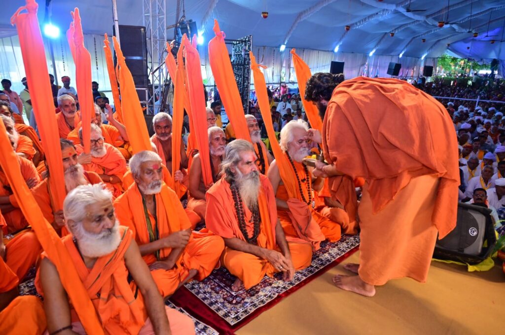 रेवदर। नंदगांव में गोऋषि स्वामी दत्तशरणानंदजी महाराज के पावन निश्रा में श्री गोकरुणा चातुर्मास आराधना महोत्सव के तहत संत सत्कार समारोह में आज गुजरात के समस्त ब्रह्म समाज के प्रतिनिधियों ने देशभर से आए सैंकड़ों संतों का सत्कार किया। जिसमें गुजरात ब्रह्म समाज के संत, भामाशाह और जन प्रतिनिधि शामिल हुए। संत सत्कार समारोह को संबोधित करते हुए गोऋषि स्वामी दत्तशरणानंदजी महाराज ने कहा कि गुजरात का ब्रह्म समाज के गोसेवा प्रकल्पों से जुड़े काम पूरे गुजरात को गौरवान्वित करते है। जो किसी से छुपा नहीं है। ब्रह्म समाज का हमेशा श्री गोधाम पथमेड़ा में विशेष योगदान रहा है। जब-जब पथमेड़ा के विभिन्न आयोजन हुए तब तब ब्रह्म समाज के लोगो ने अग्रिम पंक्ति में खड़े रह कर गोसेवा की हैं। महाराजजी ने कहा कि गुजरात के ब्रह्मलीन आनंदप्रकाशजी महाराज ने तो समूचे ब्रह्म समाज को ऐसे संस्कार और शिक्षा प्रदान की जिससे समाज उन्नत हुआ।