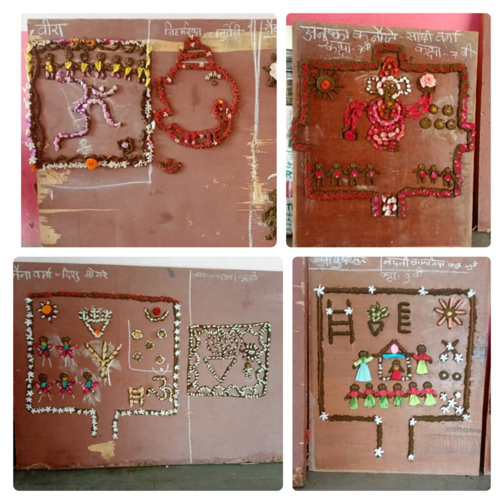 बड़वानी -लोक संस्कृति के उत्सव पर सरस्वती विद्या मंदिर बावनगजा मार्ग पर संजा बनाओं प्रतियोगिता का आयोजन किया गया।इस कार्यक्रम में विद्यालय के भैया बहनों ने बड़े उत्साह के साथ अपने घरों से संजा माता बनाने की सामग्री गोबर फूल आदि साथ लाकर विधालय परिसर में संजा माता बनाकर अपनी लोक संस्कृति को जीवित बनाए रखने का प्रयास किया वहीं संजा माता के गीत छोटी सी गाड़ी लुडकती जाए उमे बैठी संजा माय, वहीं संजा तु जीमले की झूठले आदि गीतो से वातावरण को आनंदित बना दिया। विद्यालय के प्राचार्य सुनील दशोरे बताया कि इस कार्यक्रम को करने मुख्य उद्देश्य हमारी संस्कृति से आने वाली पीढ़ी को परिचित कराना एवं उसके महत्व को बताना।इस कार्यक्रम में विद्यालय की संचालन समिति व सभी आचार्य- दीदीयो का सरहानीय सहयोग रहा।