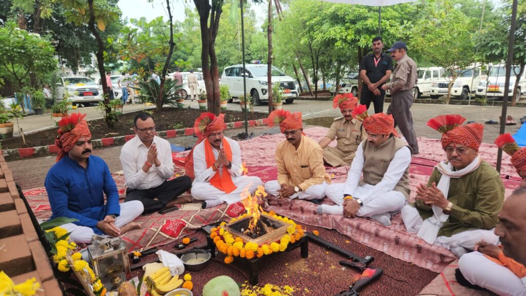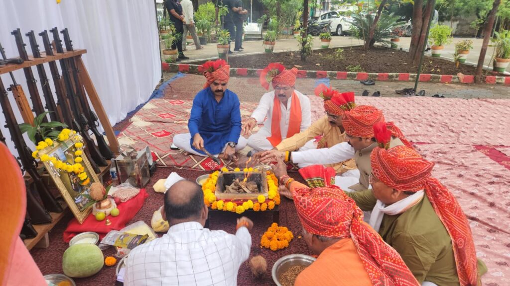शस्त्र पूजन कार्यक्रम में लोकसभा सांसद, राज्यसभा सांसद, पूर्व कैबिनेट मंत्री, गणमान्य जनप्रतिनिधि, कलेक्टर, एसपी रहे मौजूद