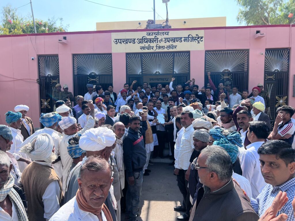 प्रदेश की वर्तमान सरकार ने पूर्व सरकार द्वारा घोषित जिला मुख्यालय से 145 किलोमीटर दूर सांचोर जिले को निरस्त किया गया है। परन्तु डींग, खेरथल व सलुम्बर जिले जो आबादी के हिसाब से सांचौर जिले के करीब-करीब बराबर हैं। डींग जिले की भरतपुर जिले से मात्र 35 किमी दूर, खैरथल जिला अलवर जिले से मात्र 45 किमी दुर व सलुम्बर जिला उदयपुर जिले से 70 किमी दूर है इनको निरस्त नहीं किया है, सांचोर जिला बचाओ संघर्ष समिति ने प्रेसनोट जारी कर बताया की आज धरने में सुखराम बिश्नोई पूर्व राज्यमंत्री ने कहा की सांचौर जिला जालोर जिले से 145 किमी दूर व अंतिम गांव आकोड़िंया रणखार करीब 250 किमी दूर हैं। पूर्व सरकार द्वारा गठित रामलुभाया कमेटी ने नवगठित जिलों में दूरी व आबादी को मानकर नये जिले गठित किये थे। जबकि वर्तमान भाजपा सरकार द्वारा कौनसे आधार पर जिलों को निरस्त किया गया कोई स्पष्ट नहीं हैं। सांचैर जिला बनने से जिला मुख्यालय नजदीक होने पर आमजन के लोगों के सभी जिले स्तर के कार्य जल्द होने लगे व आर्थिक बोझ भी ज्यादा नहीं रहा। वर्तमान सरकार सांचोर जिले को किस आधार पर निरस्त किया, इसका न्यायपालिका निस्तारण करेंगे धरने को पुखराज पराशर पूर्व जन आभाव अभियोग समिति के अध्यक्ष ने संबोधित करते हुए कहा की सांचोर जिला बनाने में कांग्रेस पार्टी ने रामलुभाया कमेटी के रिपोर्ट अनुसार बनाया था जिसमें सभी मापदण्ड पूर्ण थे उन मापदंडो के आधार पर सभी नए जिले और संभाग बनाए थे, जिसको वर्तमान सरकार ने किस आधार पर निरस्त किया कोई जानकारी नहीं है, सांचोर जिला बनाने का सभी मापदण्ड पूर्ण है सांचोर जिले को पुनः जिला बनाकर रहेंगे वर्तमान सरकार सिर्प पूर्व सरकार द्वारा किये गए कार्यो को निरस्त करने में लगी हुई है, सवाराम पटेल पूर्व विधायक आहोर ने संबोधित करते हुए कहा की सांचोर जिले को किस आधर पर निरस्त किया सांचोर जिला नहीं रखने का क्या करण है सरकार एक भी कमी नहीं बता पाई है इसमें लगता है की वर्त्तमान सरकार भेदभाव कर रही है नहीं तो सांचोर जिले को निरस्त करने का कोई एक ही गलत मापदण्ड बताये, धरने को भीमाराम चौधरी संयोजक सांचोर जिला बचाओ संघर्ष समिति, हिन्दुसिंह चौहान प्रधान प्रतिनिधि, नरेश सेठ अध्यक्ष नगरपरिषद सांचोर ने संबोधित किया, कहा की किसी भी लोक कल्याणकारी सरकार की जिम्मेदारी बनती हैं कि जनहित में लिए गए निर्णय किसी भी सरकार ने लिए हो प्रत्येक आने वाली सरकारे उन कार्यो को आगे बढाती हैं परन्तु वर्तमान भाजपा सरकार ने पिछले डेढ साल से व्यवस्थित तरीके से चल रहे सांचैर जिले को निरस्त कर बहुत बड़ी भूल की हैं। हम उसकी कड़ी निंदा करते हैं सांचैर जिलेवासियों मैं सांचोर जिले को निरस्त करने पर लोगों में भंयकर आक्रोश हैं ऐसी स्थिति में हम ज