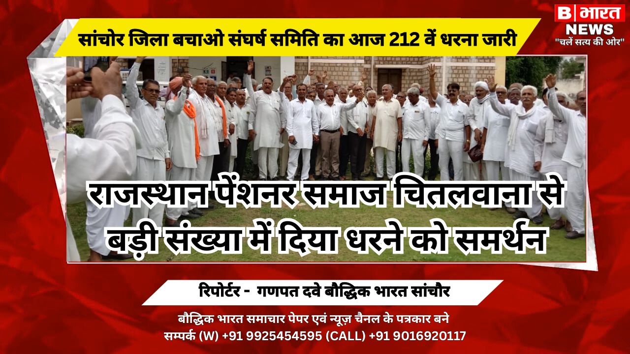 सांचोर जिला बचाओ संघर्ष समिति का आज 212 वें धरना जारी, राजस्थान पेंशनर समाज चितलवाना से बड़ी संख्या में दिया धरने को समर्थन
