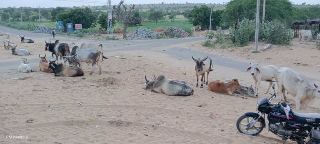 मुख्य सड़क पर मवेशियों का जमावड़ा के कारण लगातार सड़क दुर्घटनाएं हो रही है परंतु प्रशासन द्वारा इस पर कोई ध्यान नहीं दिया जाता है और मवेशियों का जमावड़ा हटने का नाम नहीं ले रहा है। जानकारी है कि लोग अपने अपने घरों में पशु धन के रूप में मवेशियों का पालन करते आ रहे हैं। राजस्थान में मवेशियों को पशुधन और दूध के लिए जाता है और प्रतिवर्ष दिवाली के मौके पर पशुधन की पूजा अर्चना की जाती है गाय को गोमाता मानते है पहले हर मोहल्ला में चारागाह हुआ करता था आजकल गोचर चारागाह भूमि पर भूमाफियों ने अतिक्रमण कब्जा कर रखा है पहले चारागाह जहां मवेशी बरसात के दिनों में विचरण करते थे। अन्य दिनों में भी यहां मवेशियों का जमावड़ा रहता था। कालांतर में लोग अपने घरों में मवेशियों के पालने को झमेला समझने लगे और धीरे-धीरे गांव में मवेशियों की संख्या घटने लगी। किसान जहां पहले बैल एवं भैंसा से हल जोतते थे तथा कृषि कार्य में भी इनका उपयोग किया जाता था। परंतु अब इस ट्रैक्टर के युग में बड़े-बड़े किसान भी बैल या भैंसा रखना छोड़ ट्रैक्टर से खेती करने लगे हैं ।
