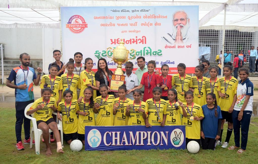 મહાદેવપુરા ગામના તળાવ કાંઠે કાંટાળા મેદાનમાં પ્રેક્ટિસ કરી તૈયાર થયેલી દીકરી ફૂટબોલ ટુર્નામેન્ટ મા ચેમ્પિયન બની