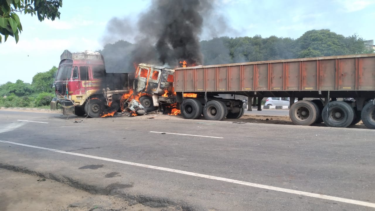 જ્યારે ડીસાથી પાલનપુર તરફ જતી ઇકો કાર પણ ટ્રકને ધડાકાભેર અથડાઈ હતી. આ રીતે ચાર વાહનો વચ્ચે અકસ્માત થયો હતો. જોકે, બંને ટ્રક વચ્ચે ફસાયેલી રિક્ષામાં અચાનક આગ લાગતા ટ્રક, ટ્રેલર અને રિક્ષા ભડભડ સળગવા લાગ્યા હતા.
