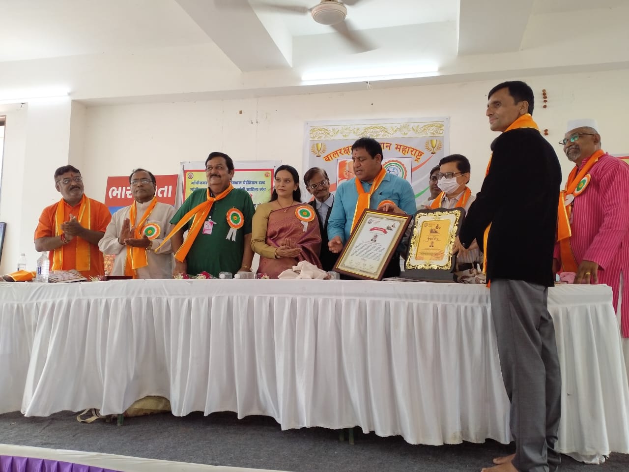 બાલ રક્ષક પ્રતિષ્ઠાન મહારાષ્ટ્ર અને ગાંધી નગર સાહિત્ય સેવા સંસ્થાન ચેરીટ્રેબલ ટ્રસ્ટ સંચાલિત મહાત્મા ગાંધી સાહિત્ય સેવા મંચ દ્વારા ભારત માતા મંદિર સેક્ટર ૭ ગાંધીનગર ખાતે વિશિષ્ટ પ્રતિભા ઓ ને સમ્માનિત કરવા માટે નો કાર્યક્રમ નાયબ નિયામક પ્રાથમિક શિક્ષણ શ્રી એમ કે રાવલ સાહેબની અધ્યક્ષતા માં યોજાઈ ગયો, જેમાં મહાત્મા ગાંધી સાહિત્ય સેવા સંસ્થા ગાંધી નગર ના અધ્યક્ષ શ્રી ડૉ ગુલાબચંદ પટેલ, શ્રી નાજા સાહેબ ડેપ્યૂટી મેયર પૂર્વ, શ્રી રાધેશ્યામ ભાઇ યાદવ, શ્રી વિનોદભાઈ ચૌહાણ અતિથિ તરીકે ઉપસ્થિત રહ્યા હતા. આ કાર્યક્રમ માં મહારાષ્ટ્ર બાલ પ્રતિષ્ઠાન ના અધ્યક્ષ શ્રી ડૉ રાની ખેડીકર, સચિવ શ્રી નરેશ વાઘ અને કાર્ય અધ્યક્ષ શ્રી મનોજ ચીનચોરે ઉપસ્થિત રહ્યા હતા